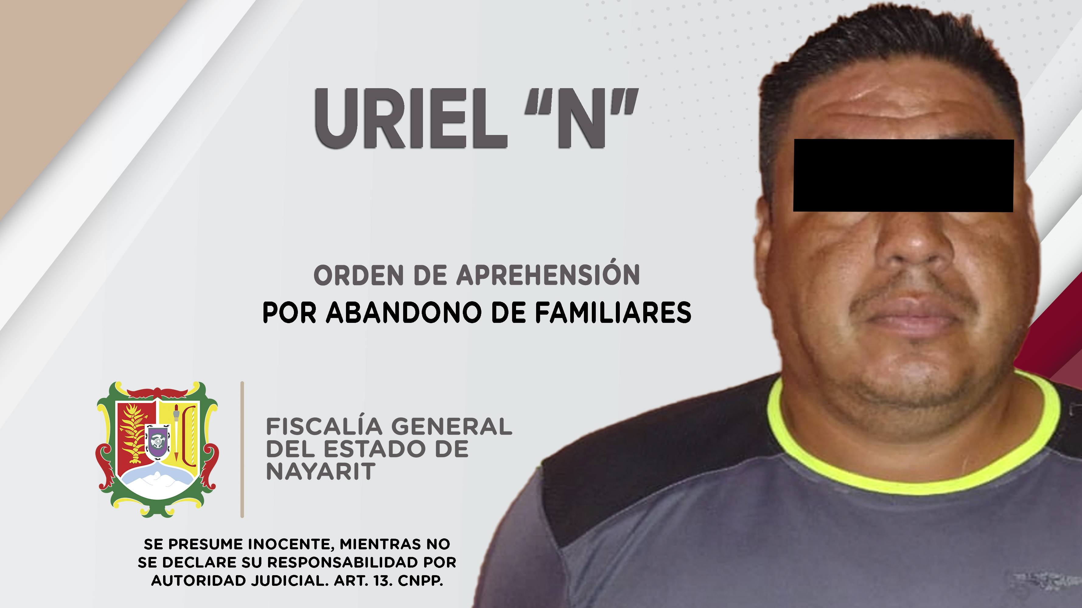 La Fiscalía General del estado de Nayarit a través de personal de la Agencia de Investigación Criminal, dio cumplimiento a una orden de aprehensión en el poblado Zacualpan, municipio de Compostela, la cual se ejecutó contra Uriel “N”, por su pro...