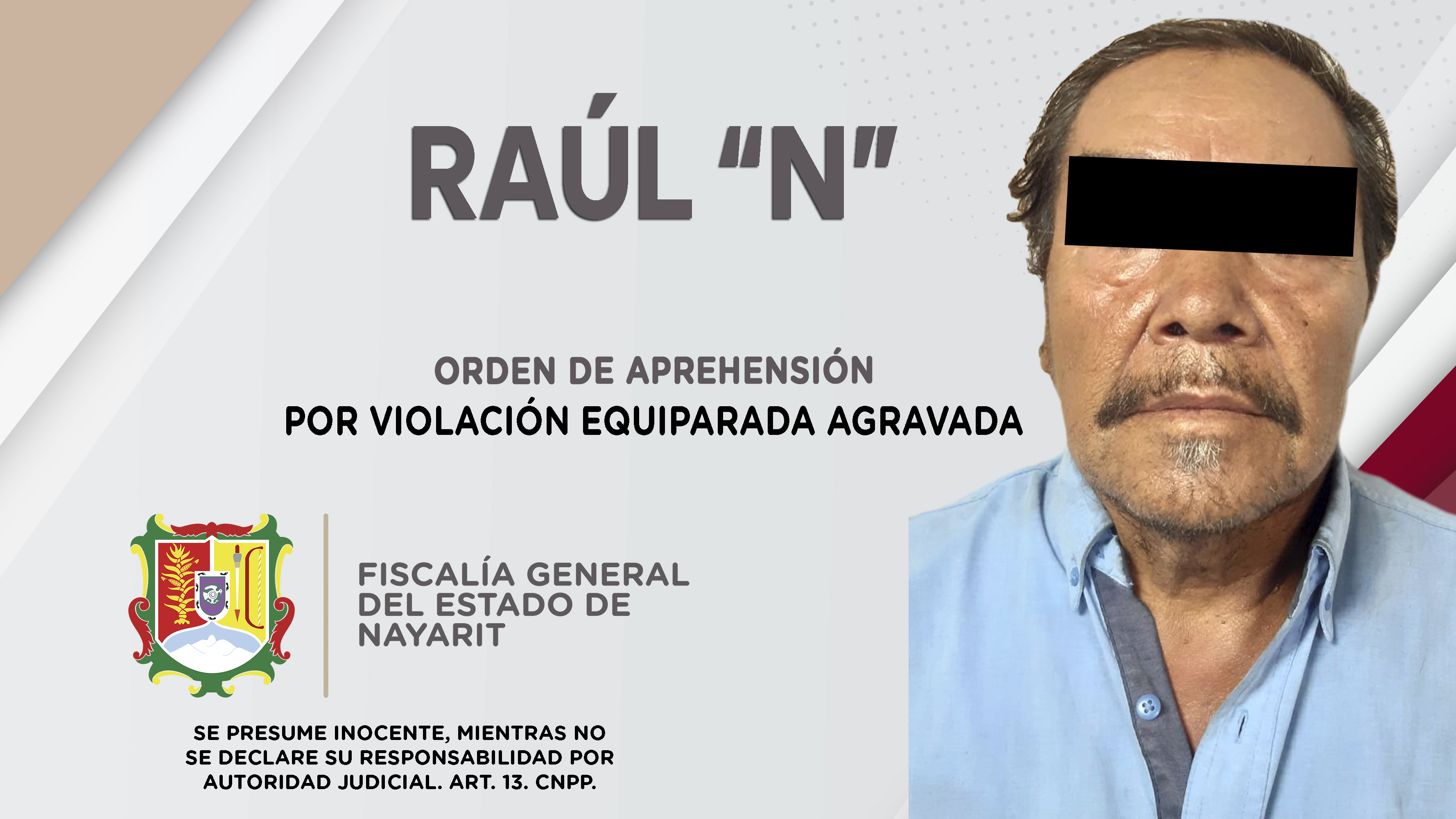 Elementos de la Agencia de Investigación Criminal de Nayarit dieron cumplimiento a una orden de aprehensión en la capital nayarita, la cual se ejecutó contra Raúl “N”, por su probable participación en hechos que la ley califica como delito de vi...