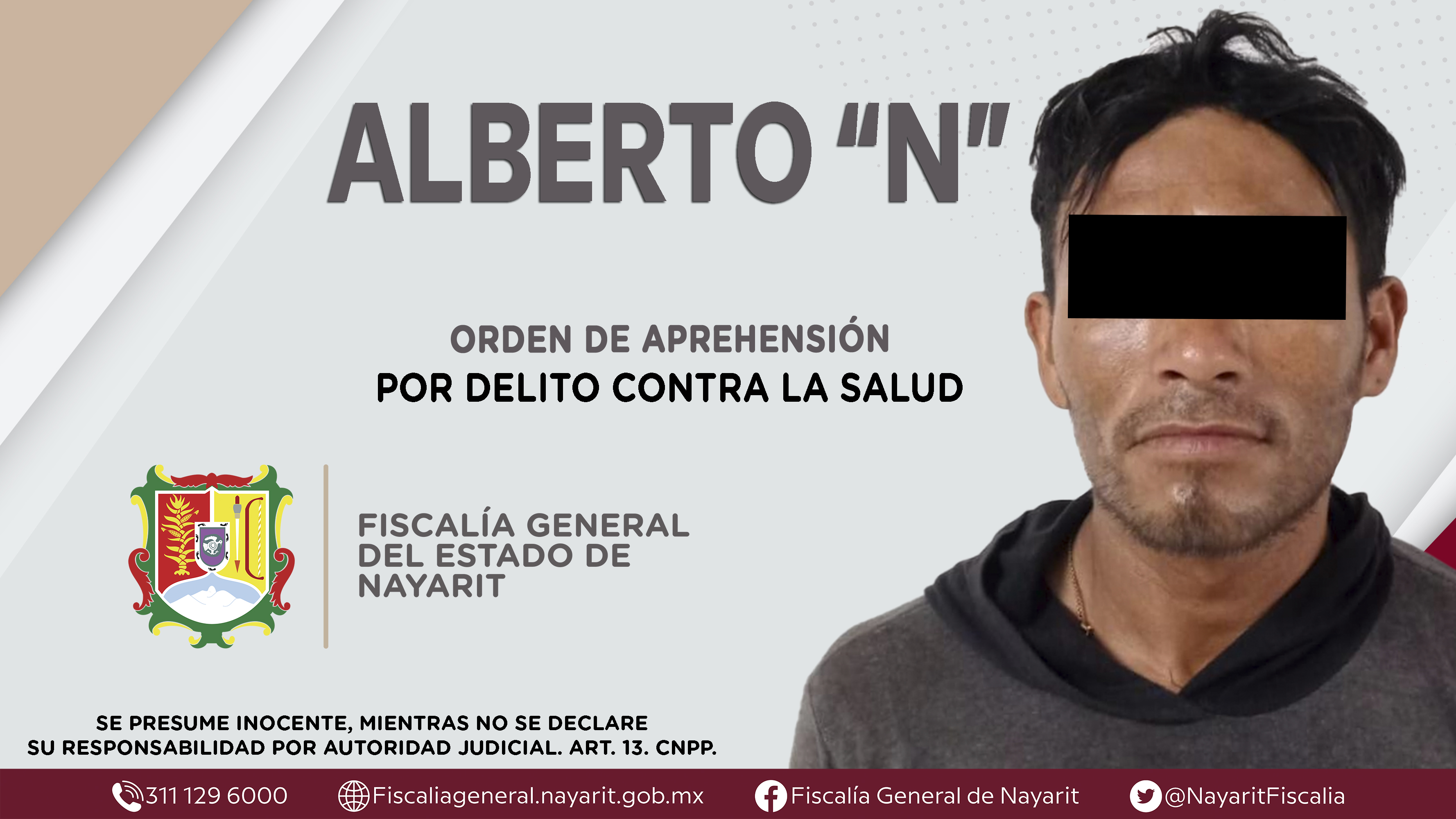La Fiscalía General del Estado a través de la Agencia de Investigación Criminal dio cumplimiento a una orden de aprehensión en la capital nayarita contra Alberto “N”, por su presunta participación en hechos que según apreciación de la ley encu...