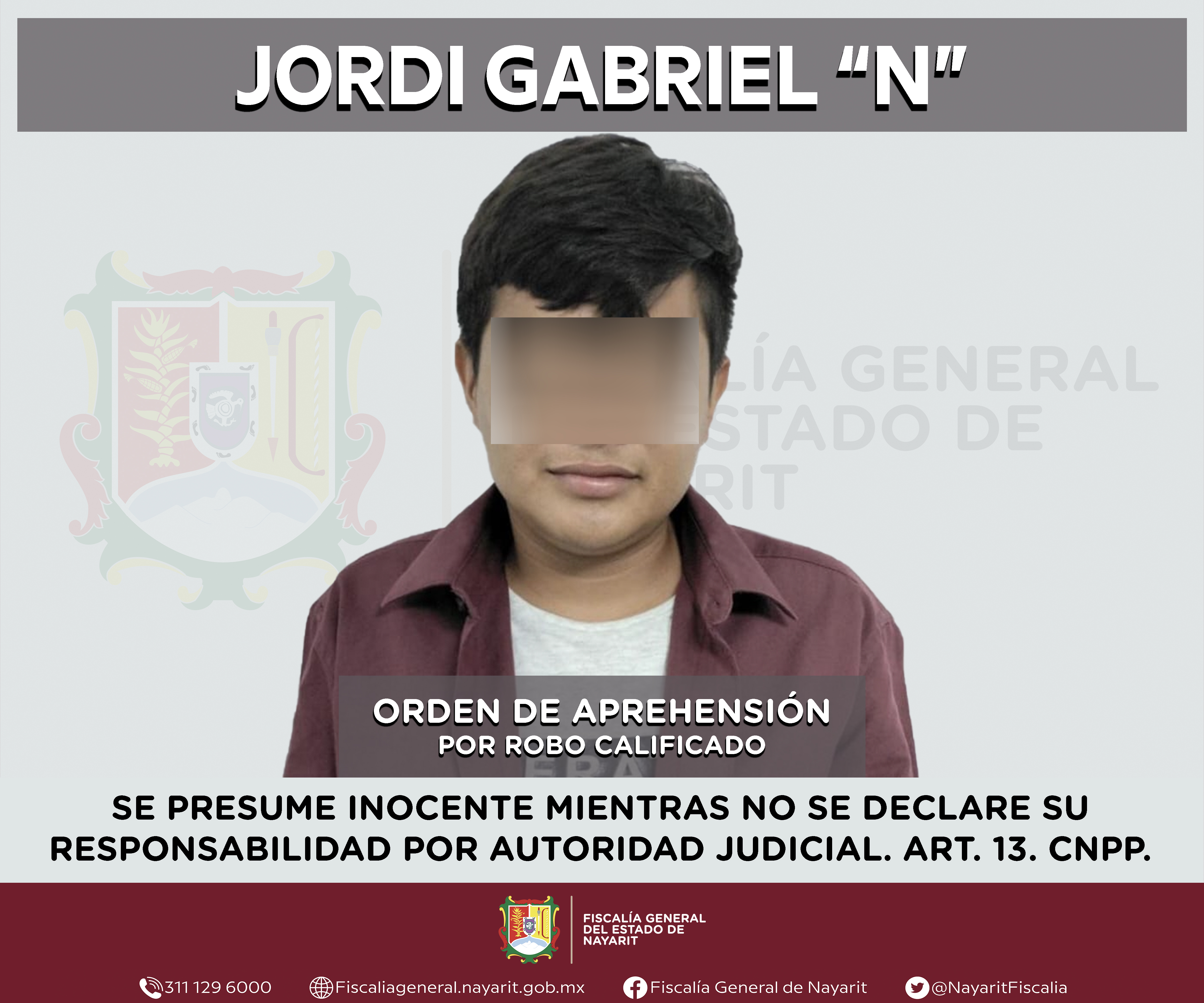 La Fiscalía General del estado de Nayarit a través de la Agencia de Investigación Criminal ejecutó una orden de aprehensión en la capital nayarita contra Jordi Gabriel “N”, por su presunta participación en hechos que según valoración de la le...