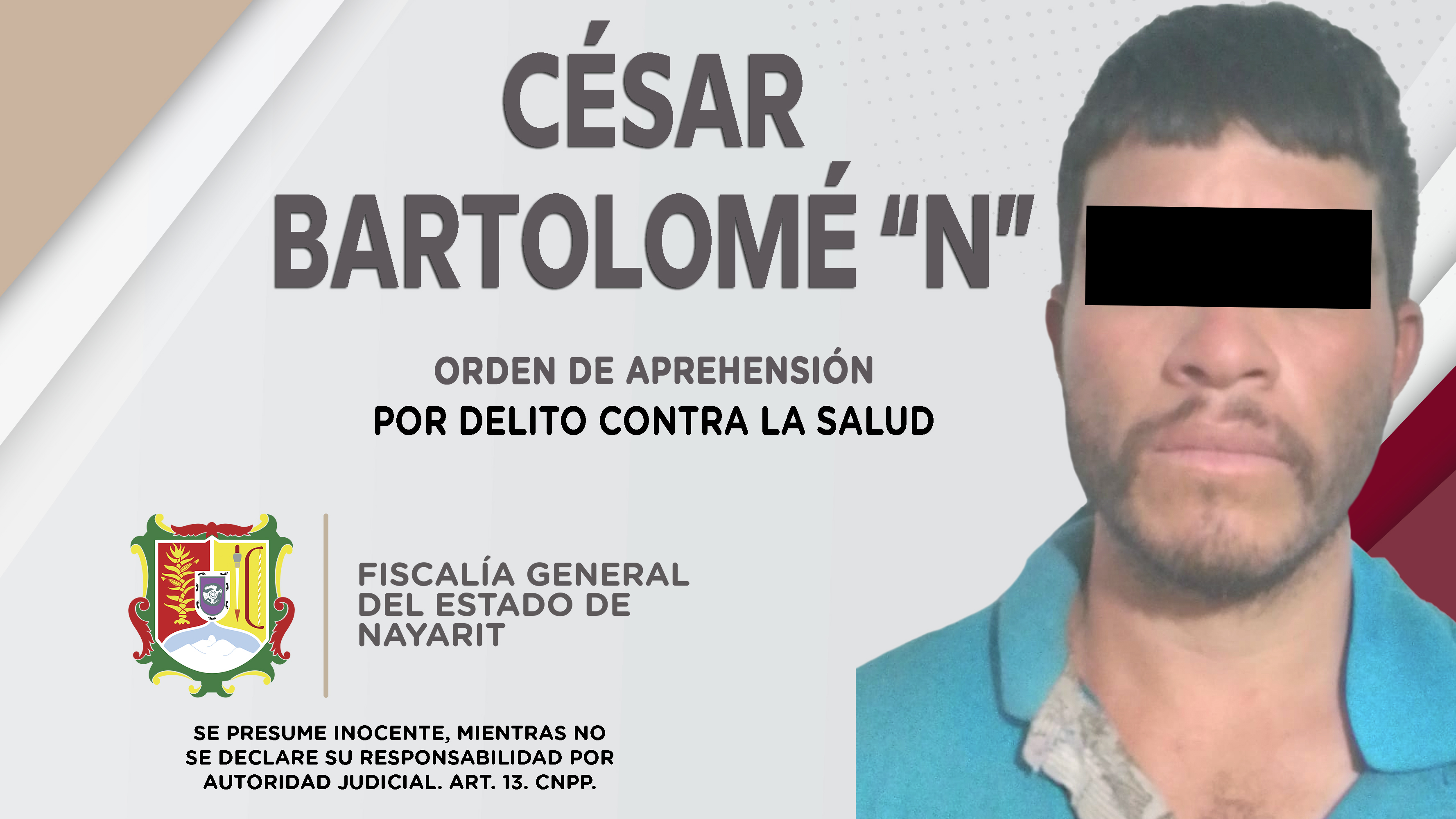 La Fiscalía General del estado de Nayarit a través de la Agencia de Investigación Criminal, dio cumplimiento a una orden de aprehensión en la ciudad de Tepic, la cual se obsequió contra César Bartolomé “N”, por su probable participación en he...