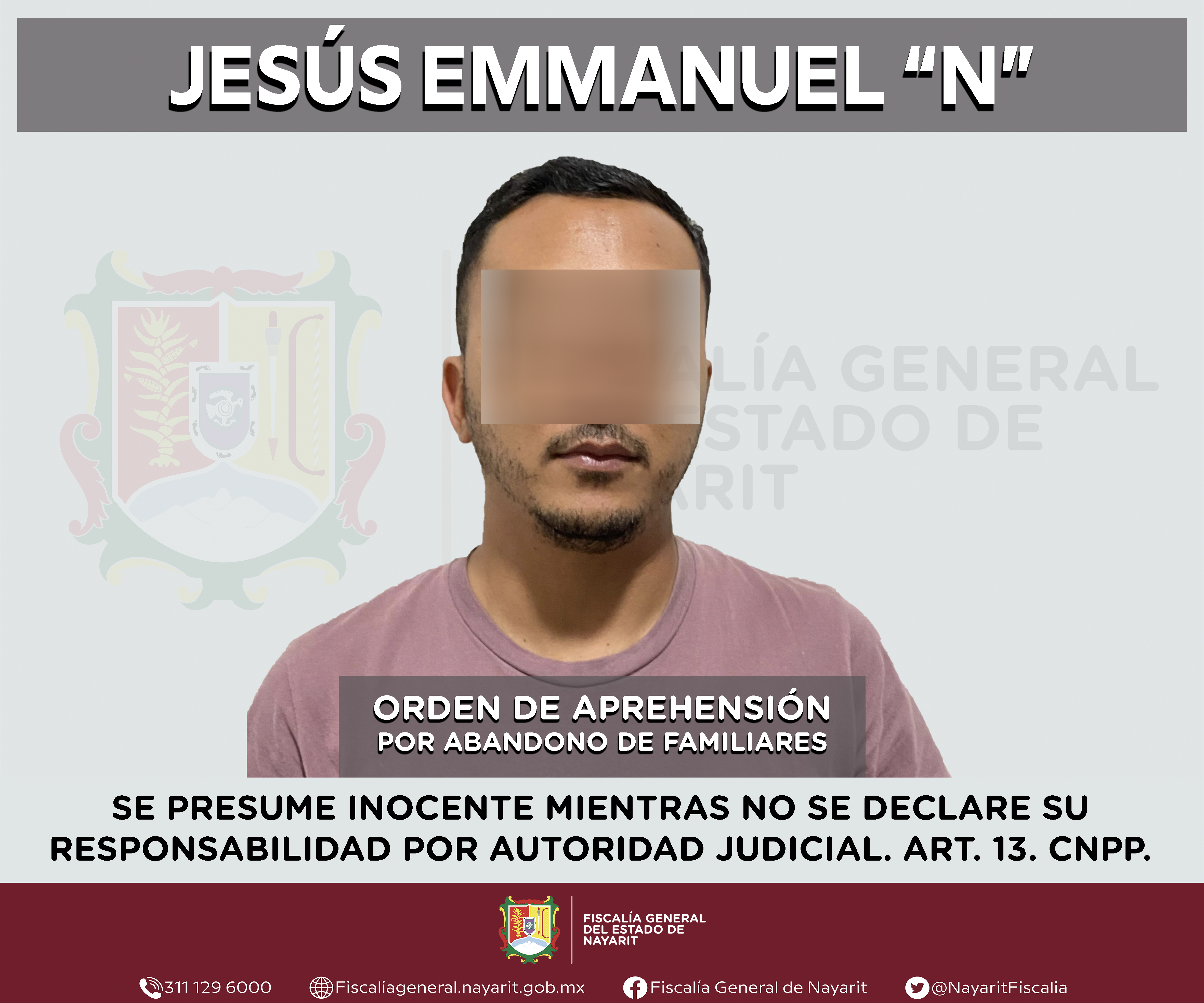 La Fiscalía General del estado de Nayarit a través de la Agencia de Investigación Criminal ejecutó una orden de aprehensión en la localidad Carrillo Puerto, municipio de Compostela contra Jesús Emmanuel “N”, por su presunta participación en he...
