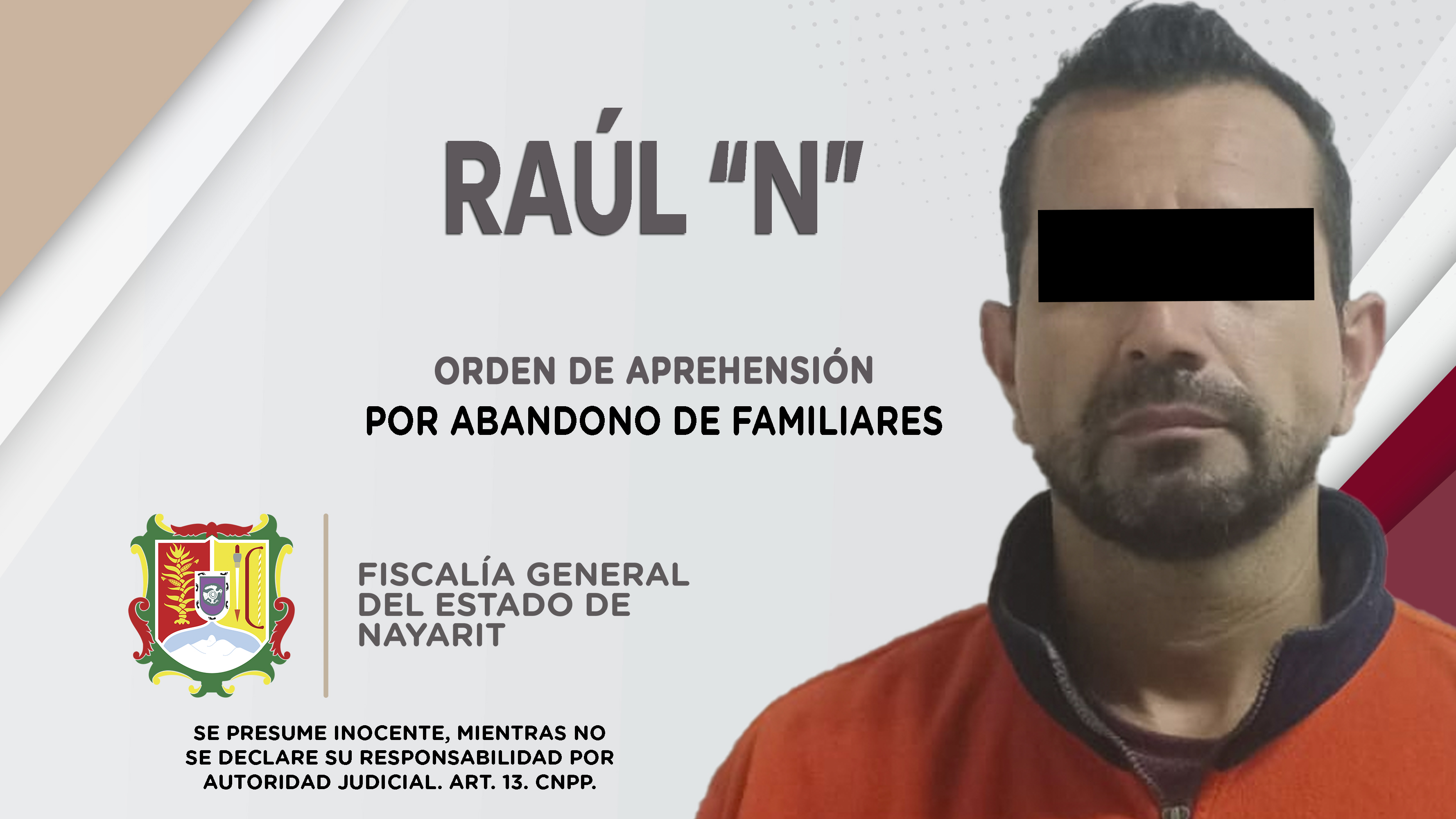 Elementos de la Agencia de Investigación Criminal de Nayarit ejecutaron una orden de aprehensión en el municipio de San Blas contra Raúl “N”, porque se presume su responsabilidad penal en hechos que según la ley configuran el delito de abandono d...