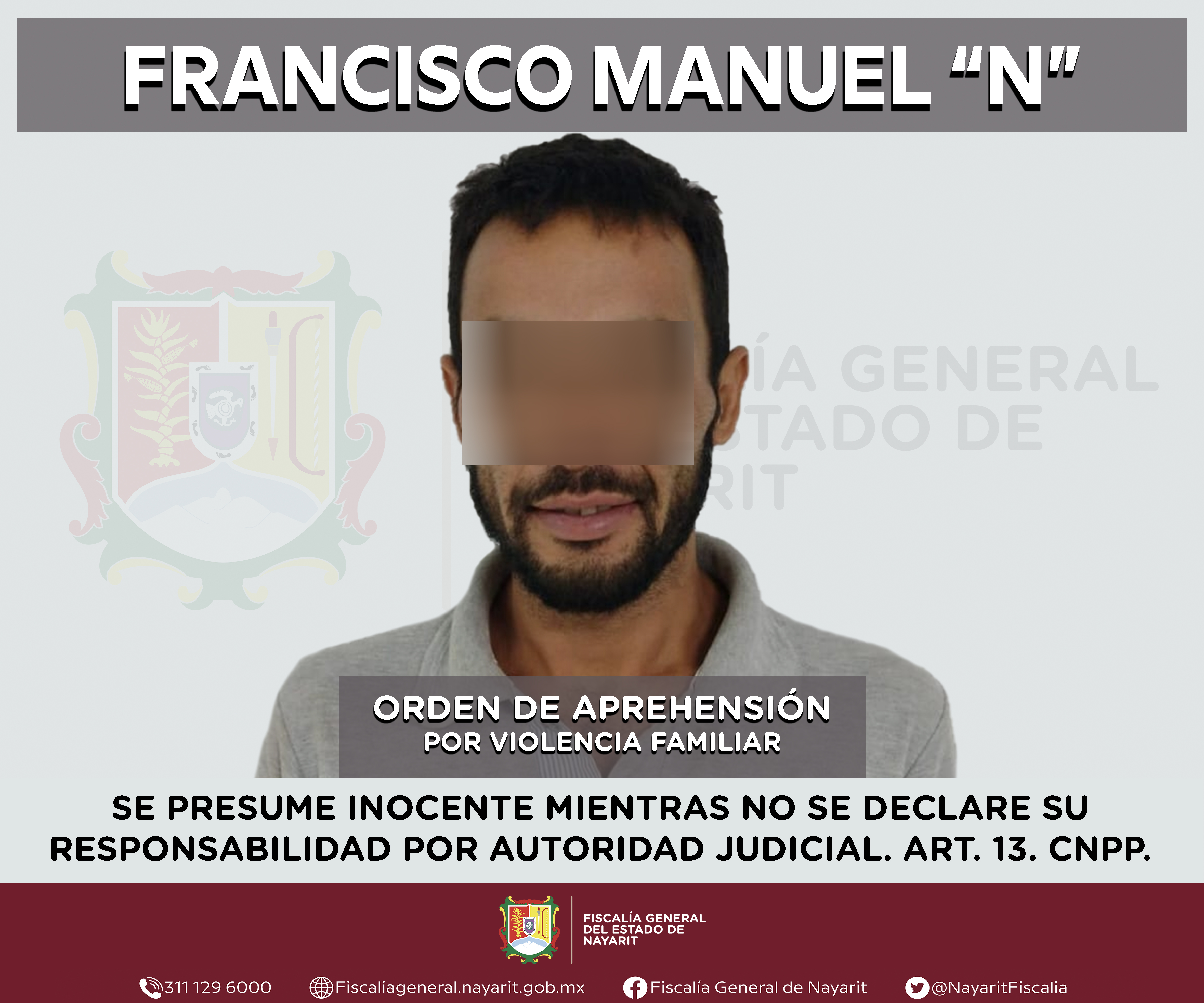 La Fiscalía General del estado de Nayarit a través de la Agencia de Investigación Criminal ejecutó una orden de aprehensión en la localidad Lo de Lamedo, municipio de Tepic contra Francisco Manuel “N”, por su presunta participación en hechos qu...