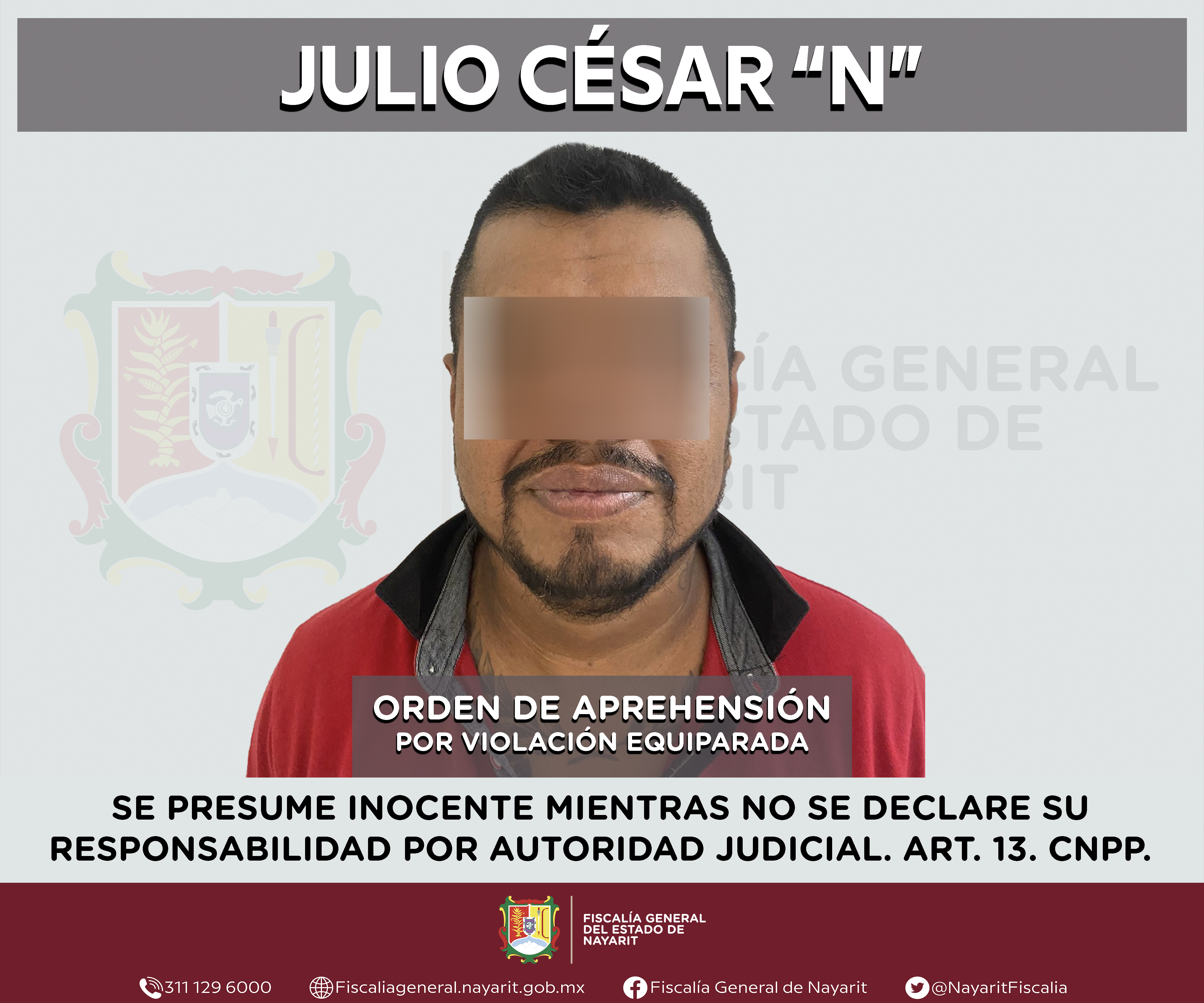 La Fiscalía General del estado de Nayarit a través de la Agencia de Investigación Criminal ejecutó una orden de aprehensión en la localidad Jarretaderas, municipio de Bahía de Banderas contra Julio César “N”, por su presunta participación en ...