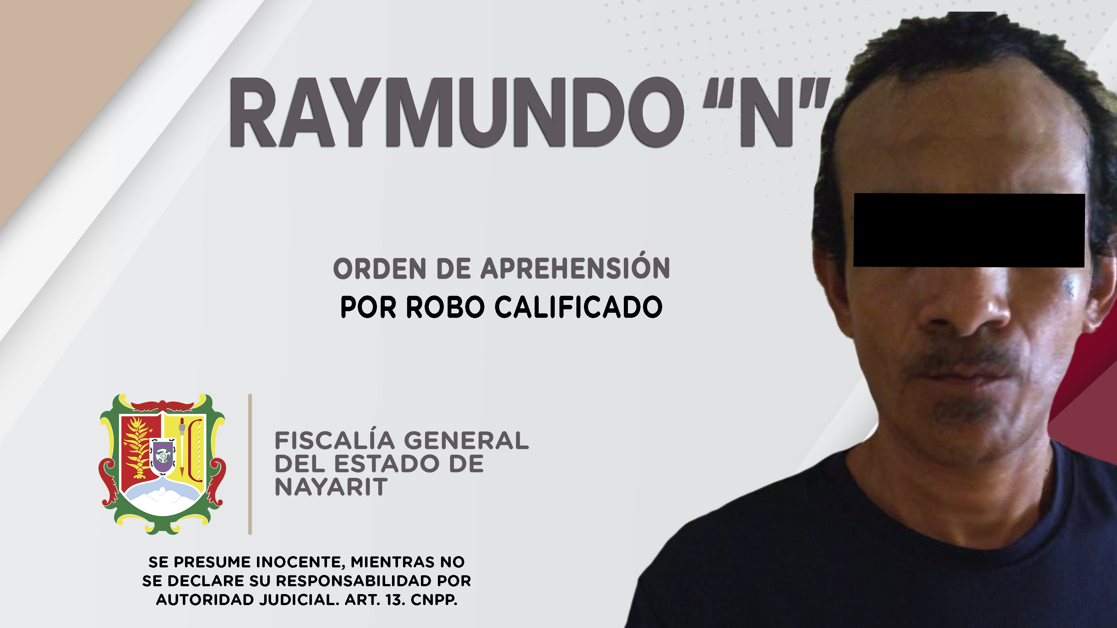 En el poblado Villa Hidalgo, municipio de Santiago Ixcuintla, elementos de la Agencia de Investigación Criminal de Nayarit dieron cumplimiento a una orden de reaprehensión, misma que se obsequió contra Raymundo “N”, por su probable participación ...