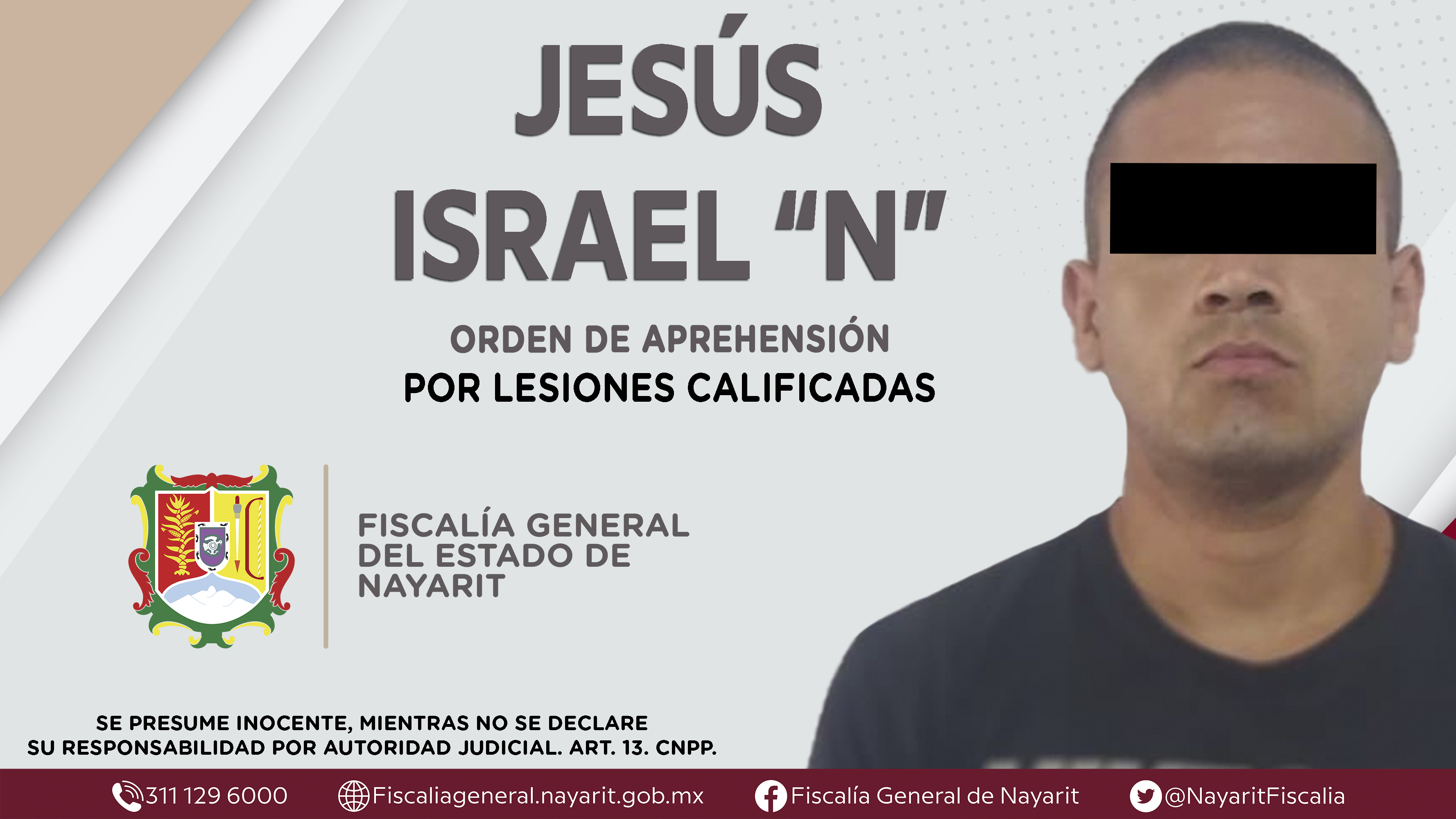 La Fiscalía General del Estado a través de la Agencia de Investigación Criminal dio cumplimiento a una orden de aprehensión en el municipio de Santiago Ixcuintla contra Jesús Israel “N”, por su presunta participación en hechos que según valora...