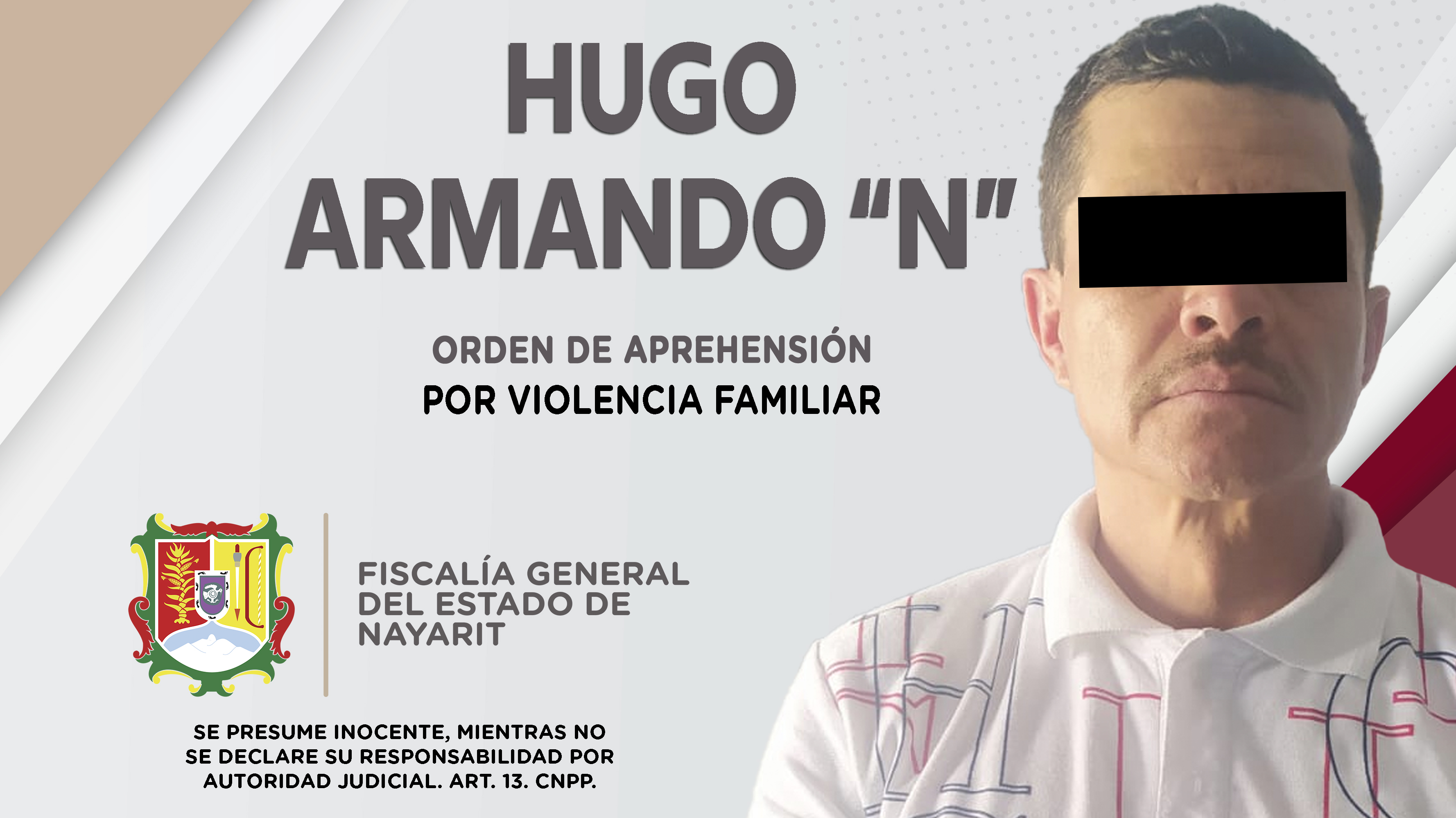En el municipio de Xalisco, elementos de la Agencia de Investigación Criminal de Nayarit ejecutaron una orden de aprehensión contra Hugo Armando “N”, por su probable participación en hechos que según la ley configuran el delito de violencia famil...