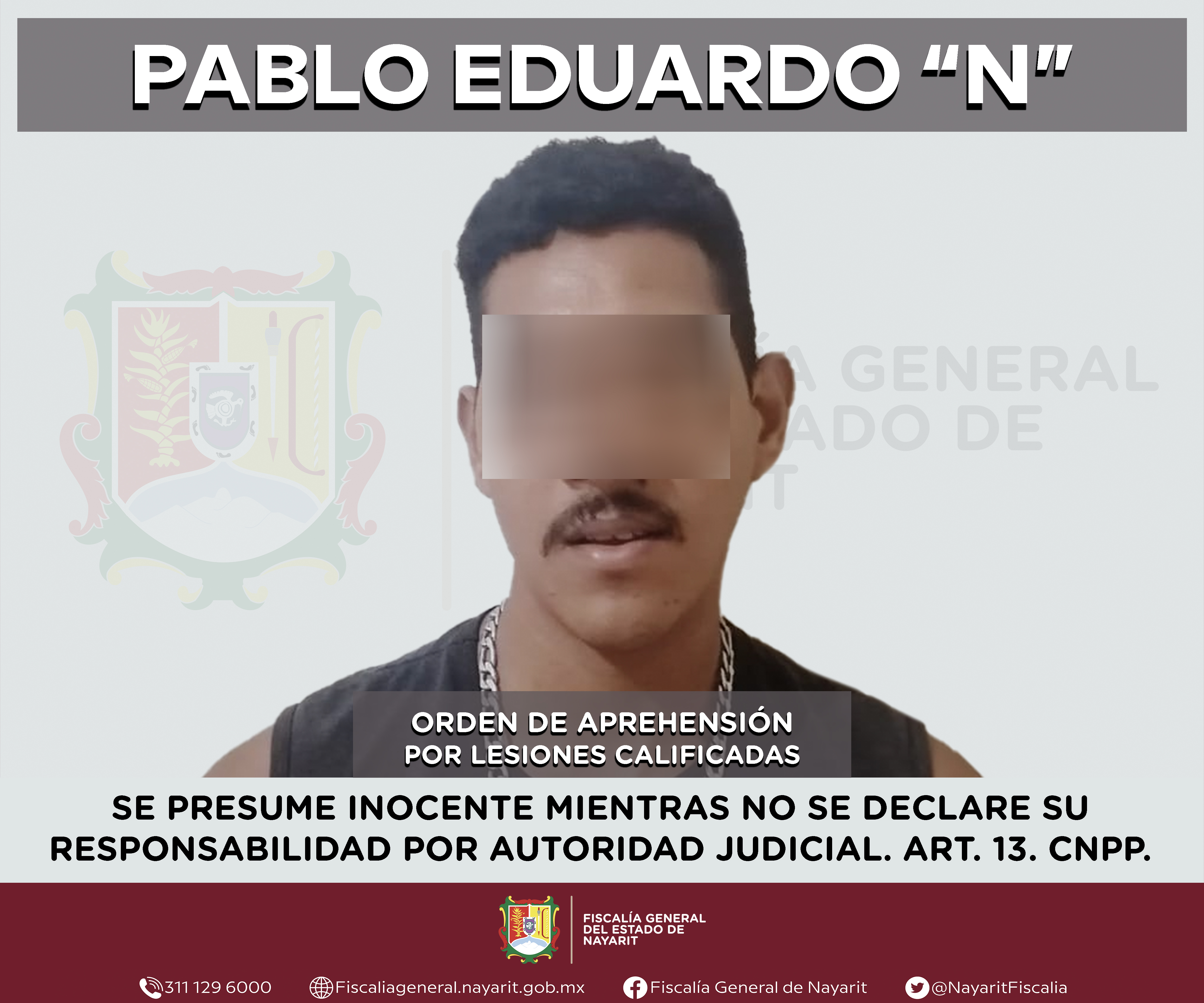 Elementos de la Agencia de Investigación Criminal de Nayarit ejecutaron una orden de aprehensión en la localidad Unión de Corrientes, municipio de Tuxpan contra Pablo Eduardo “N”, por su presunta participación en hechos que según apreciación de...