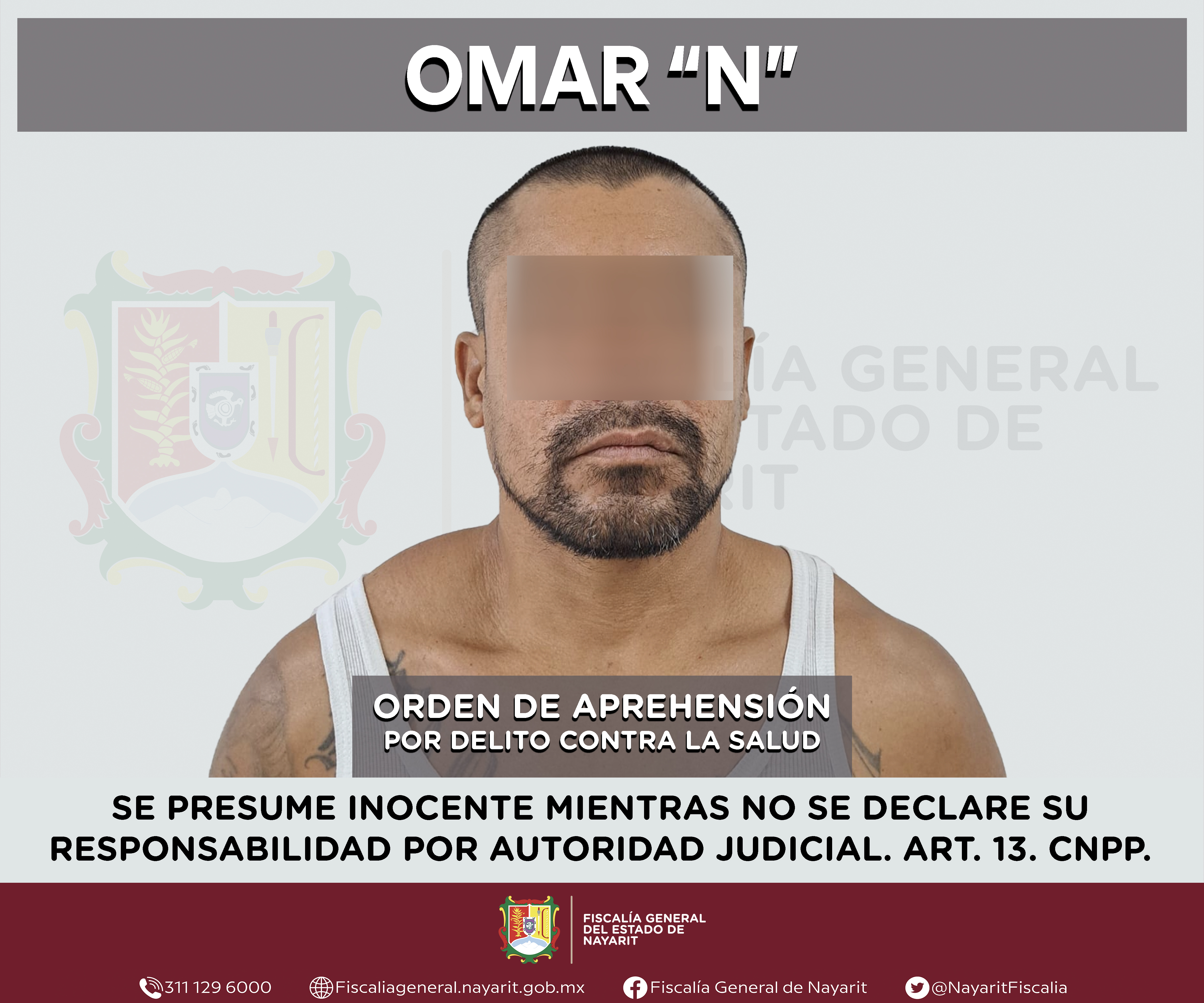 Elementos de la Agencia de Investigación Criminal de Nayarit ejecutaron una orden de aprehensión en la ciudad de Tepic contra Omar “N”, por su presunta participación en hechos que según valoración de la ley configuran el delito contra la salud e...