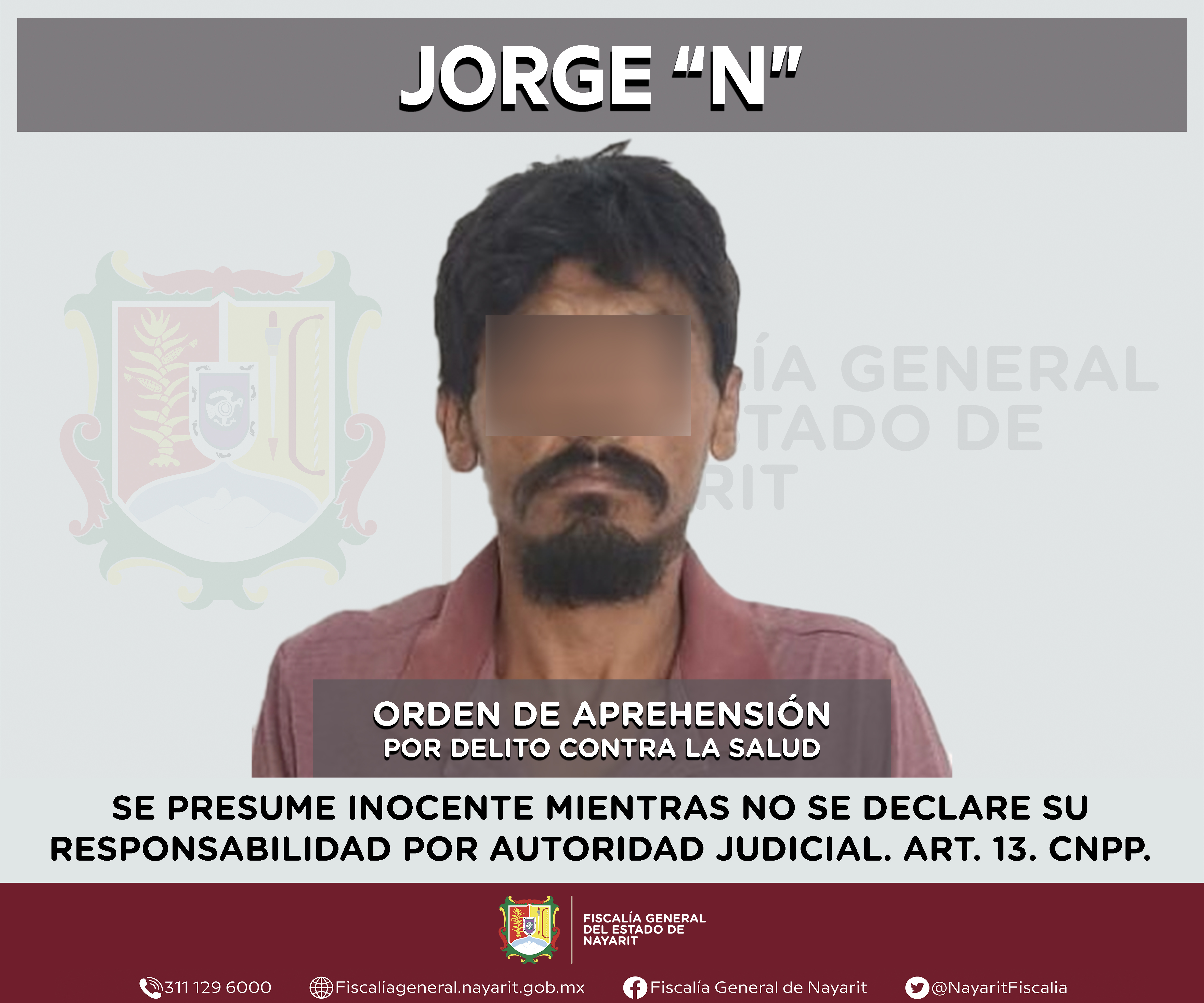 La Fiscalía General del Estado a través de la Agencia de Investigación Criminal cumplimentó una orden de aprehensión en la capital nayarita contra Jorge “N”, por su presunta participación en hechos que bajo apreciación de la ley configuran el ...