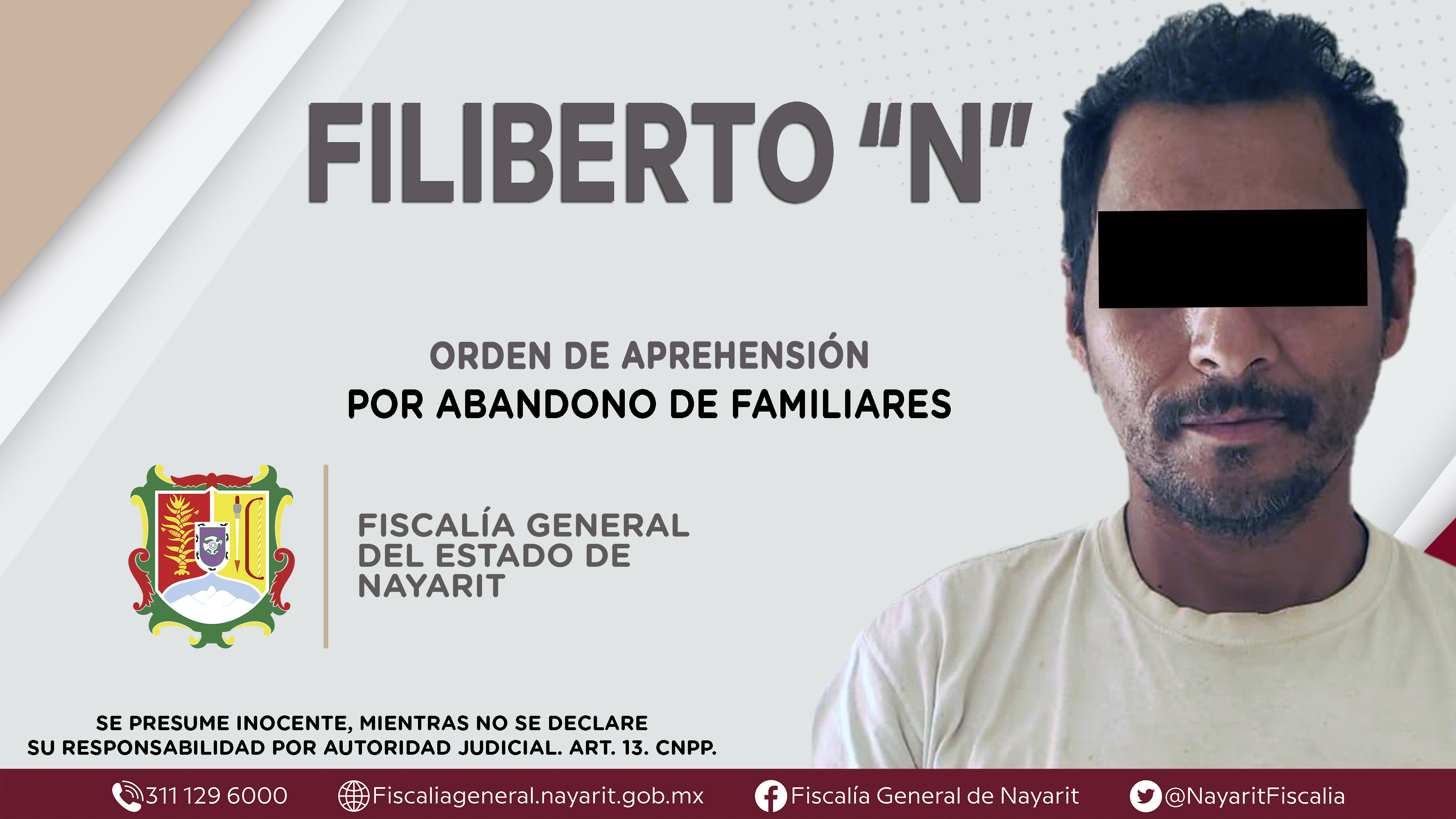 Elementos de la Agencia de Investigación Criminal de Nayarit ejecutaron una orden de aprehensión en el municipio de Tuxpan contra Filiberto “N”, por su presunta participación en hechos que s...