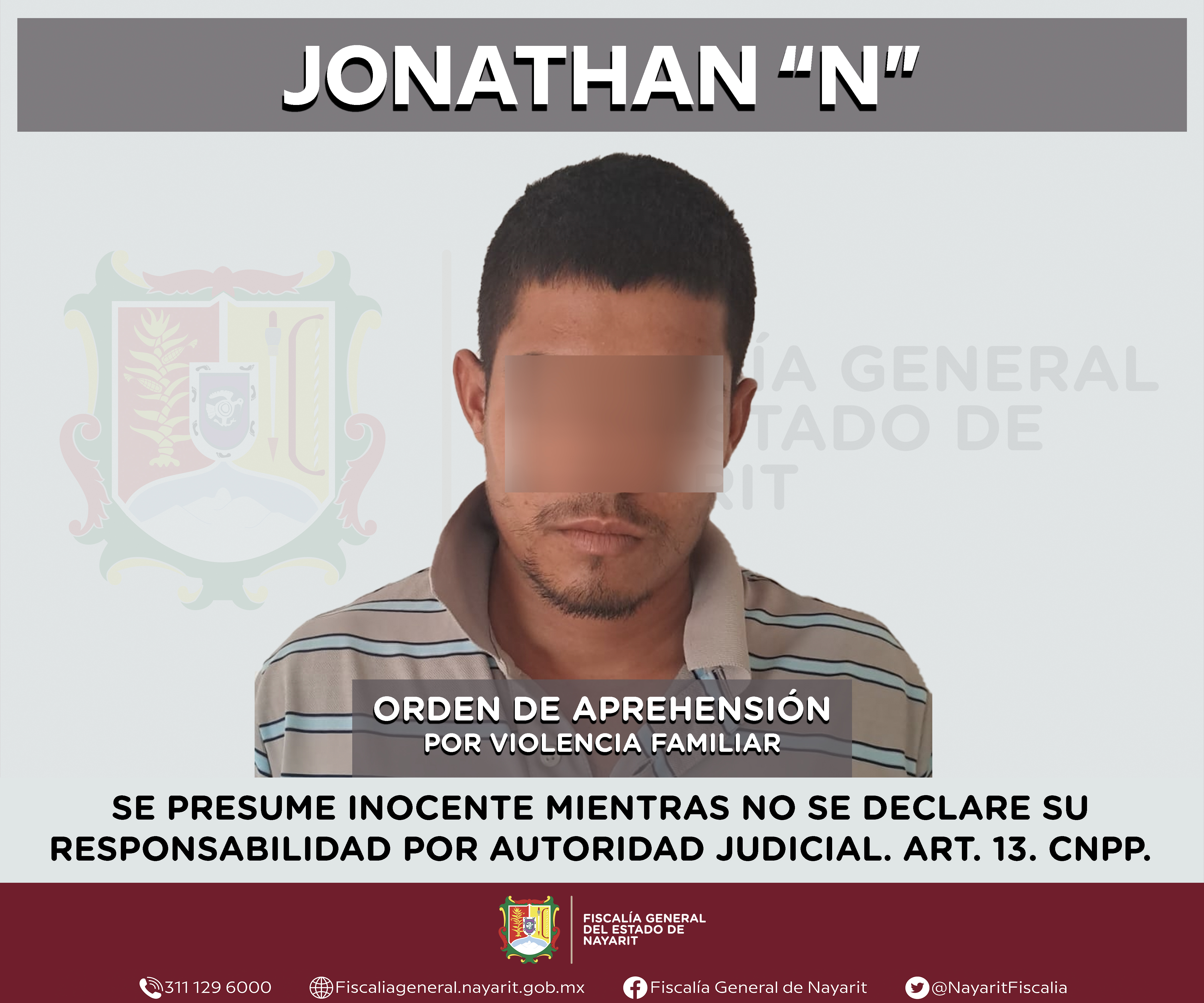 La Fiscalía General del Estado a través de la Agencia de Investigación Criminal cumplimentó una orden de aprehensión en el municipio de Ruiz contra Jonathan “N”, por su presunta participación en hechos que bajo apreciación de la ley configuran...
