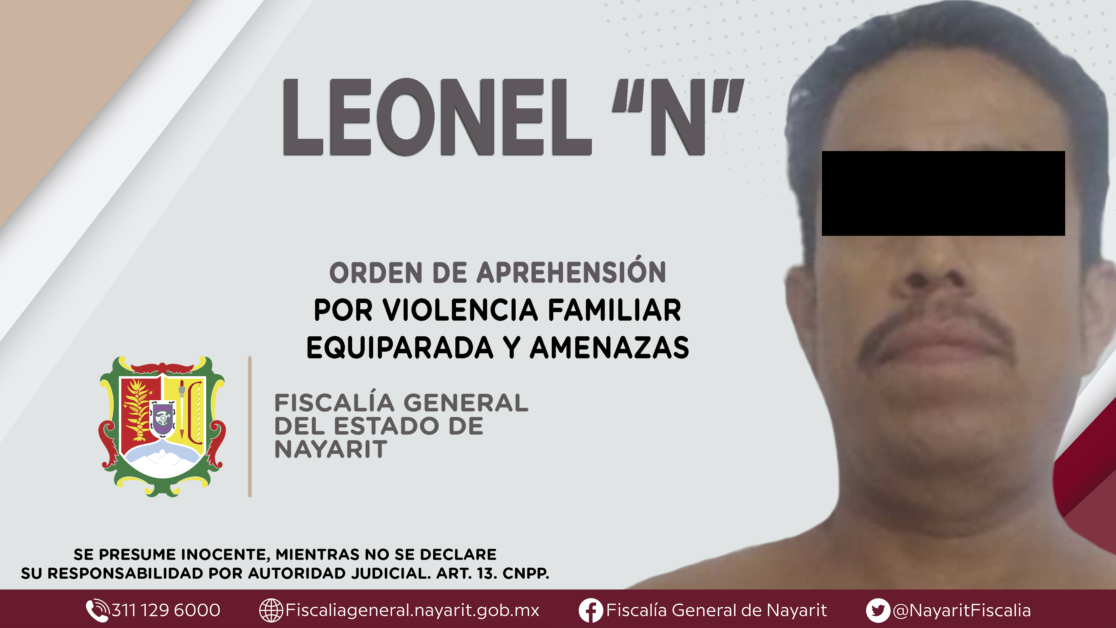 La Fiscalía General del Estado a través de la Agencia de Investigación Criminal dio cumplimiento a una orden de aprehensión en la localidad Estación Yago, municipio de Santiago Ixcuintla contra Leonel “N”, por su presunta participación en hecho...