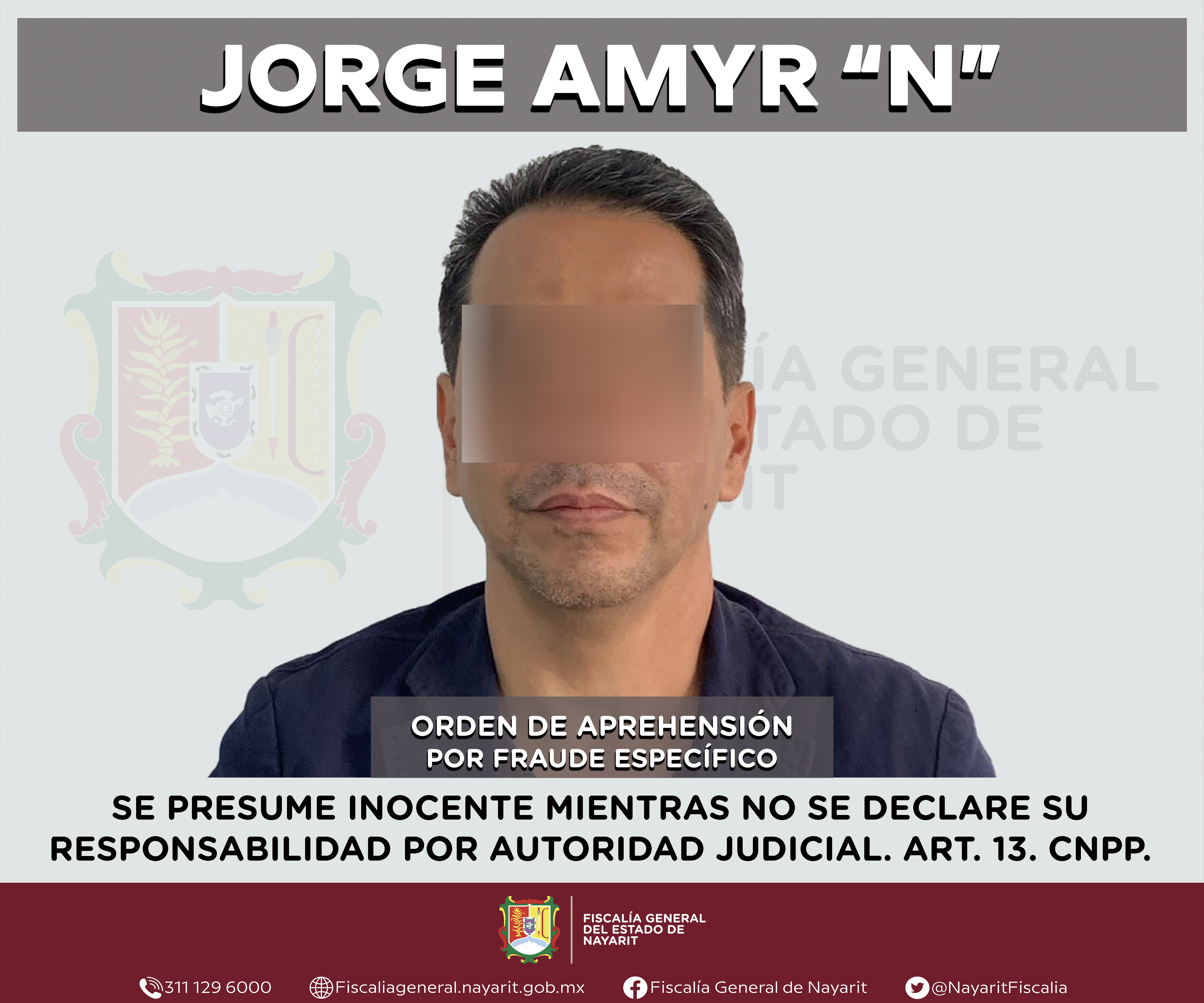 Elementos de la Agencia de Investigación Criminal de Nayarit ejecutaron una orden de aprehensión en la ciudad de Tepic contra Jorge Amyr “N”, por su presunta participación en hechos que según apreciación de la ley encuadran el delito de fraude e...