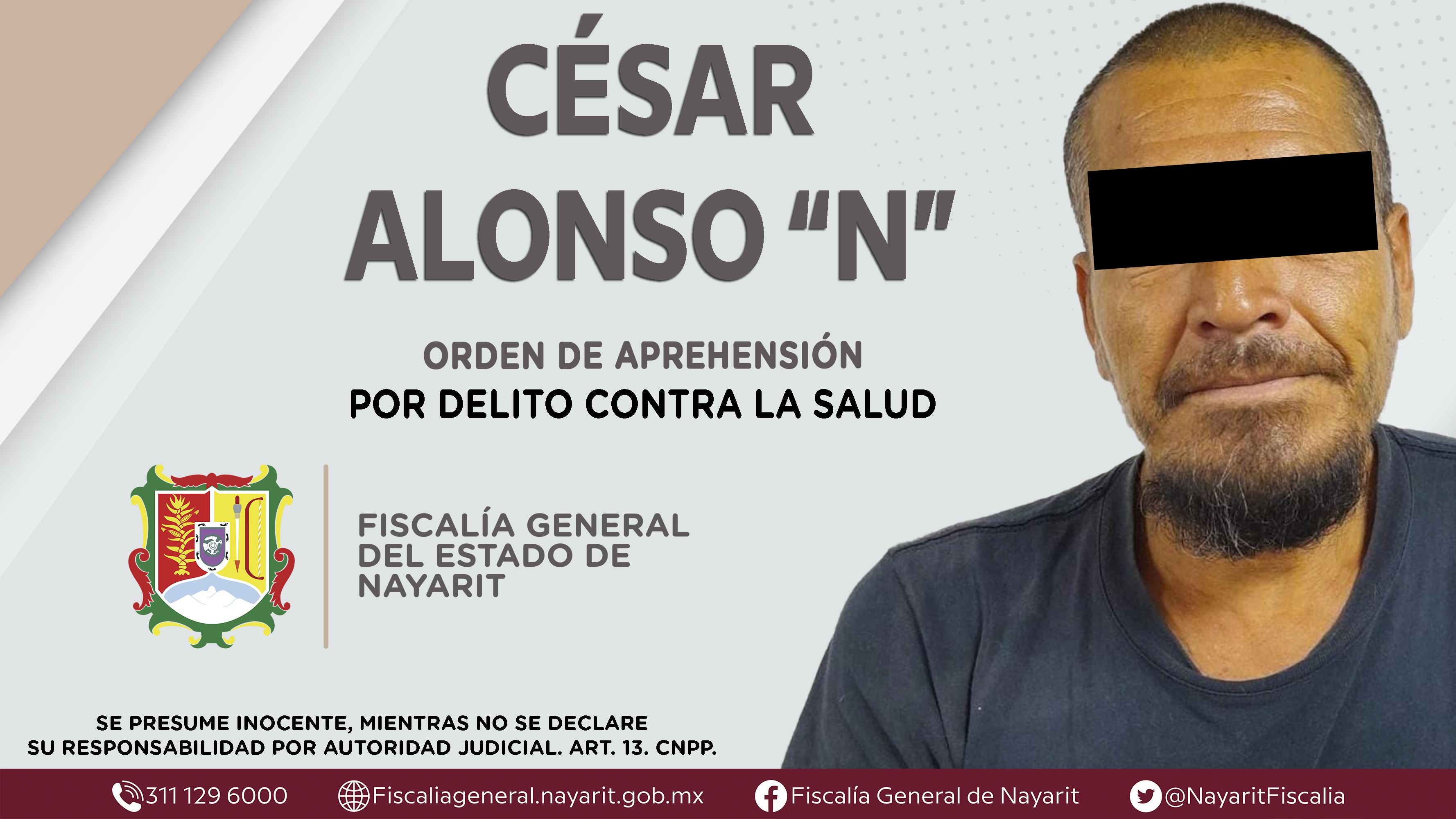 La Fiscalía General del Estado a través de la Agencia de Investigación Criminal dio cumplimiento a una orden de aprehensión en la ciudad de Tepic contra César Alonso “N”, por su presunta participación en hechos que según valoración de la ley ...