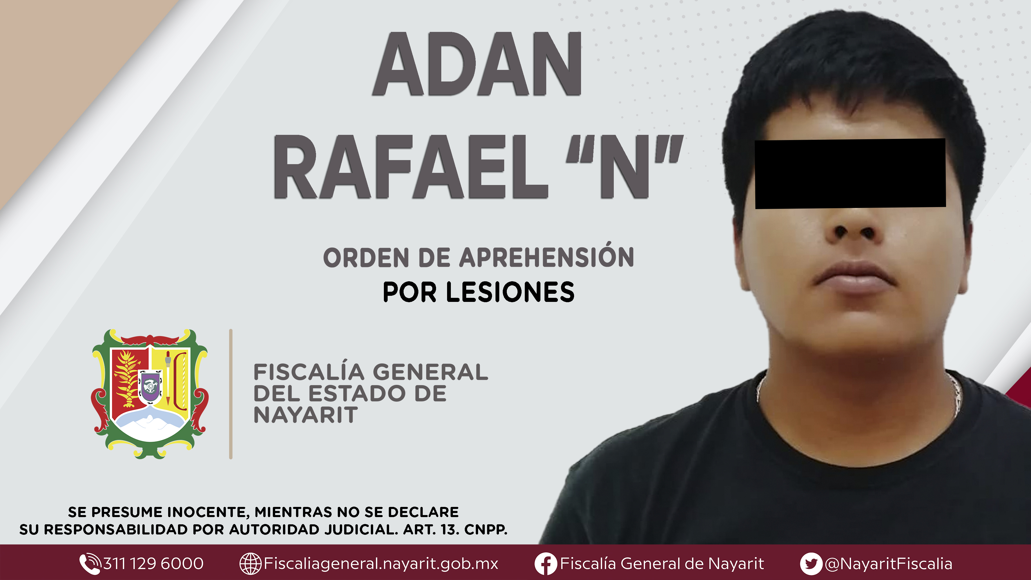 La Fiscalía General del Estado a través de la Agencia de Investigación Criminal dio cumplimiento a una orden de aprehensión en el municipio de Bahía de Banderas contra Adan Rafael “N”, por su presunta participación en hechos que según valoraci...