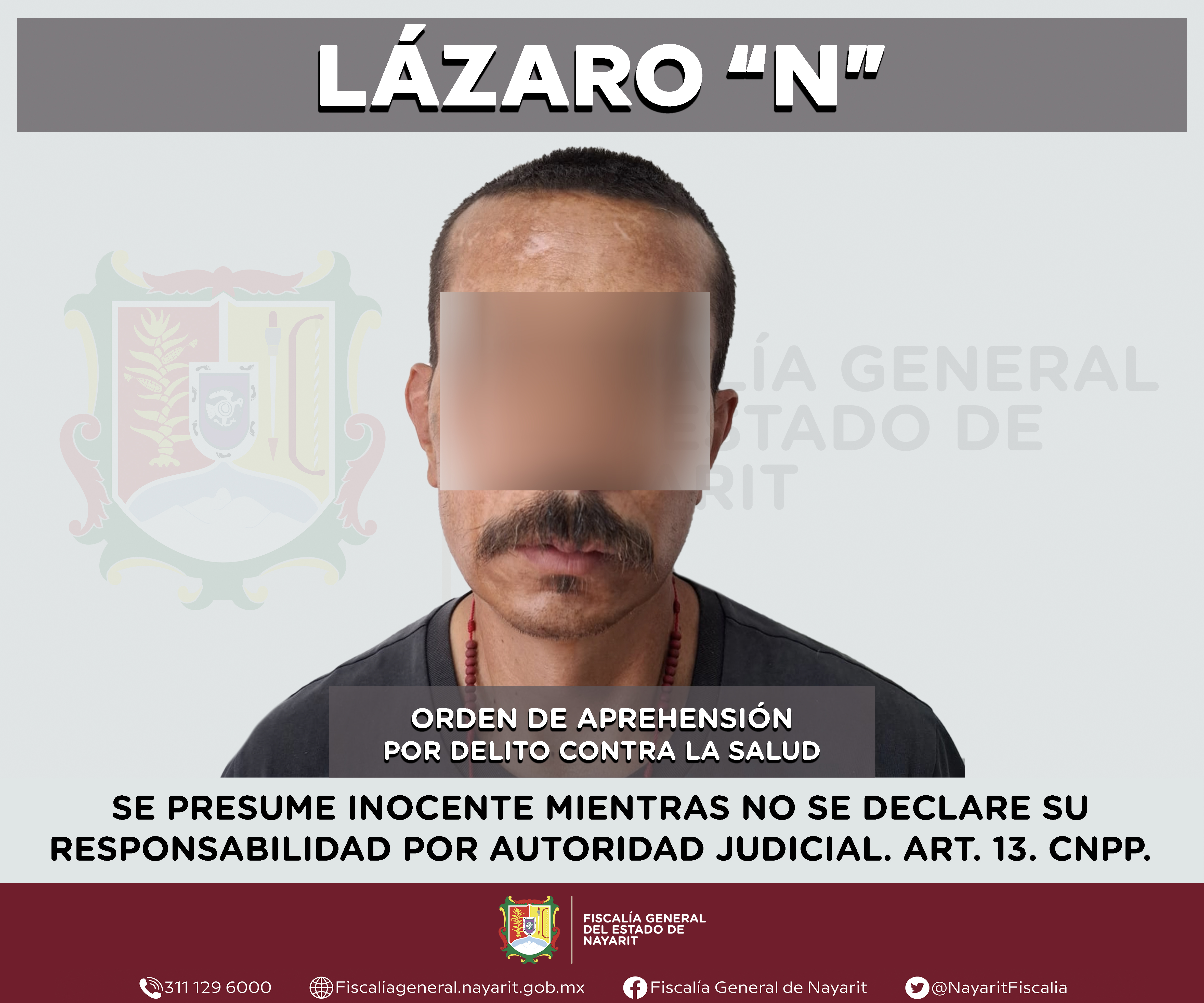 Elementos de la Agencia de Investigación Criminal de Nayarit ejecutaron una orden de aprehensión en la ciudad de Tepic contra Lázaro “N”, por su presunta participación en hechos que según apreciación de la ley encuadran el delito contra la salu...