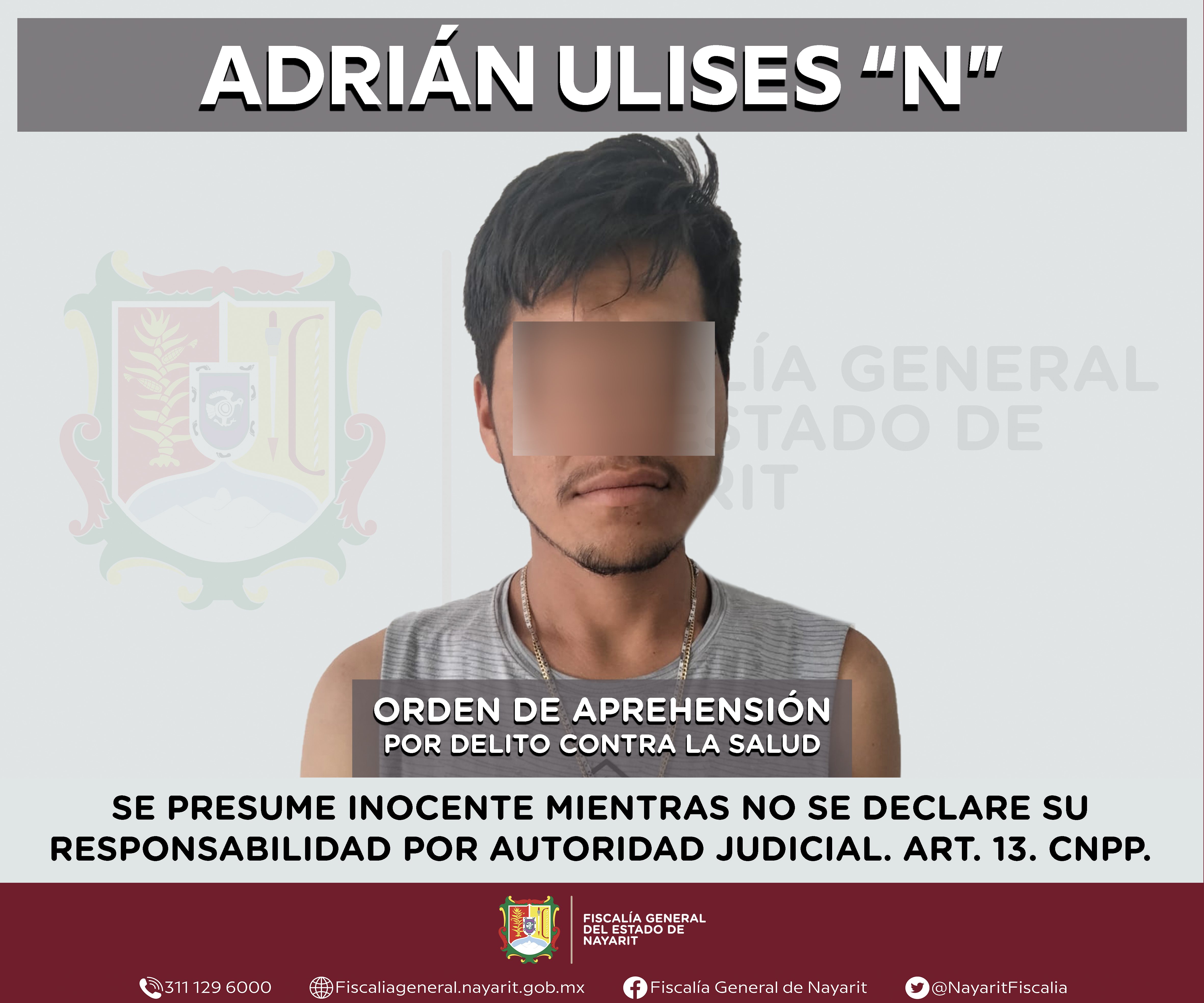 Elementos de la Agencia de Investigación Criminal de Nayarit ejecutaron una orden de aprehensión en la capital nayarita contra Adrián Ulises “N”, por su presunta participación en hechos que bajo apreciación de la ley configuran el delito contra ...