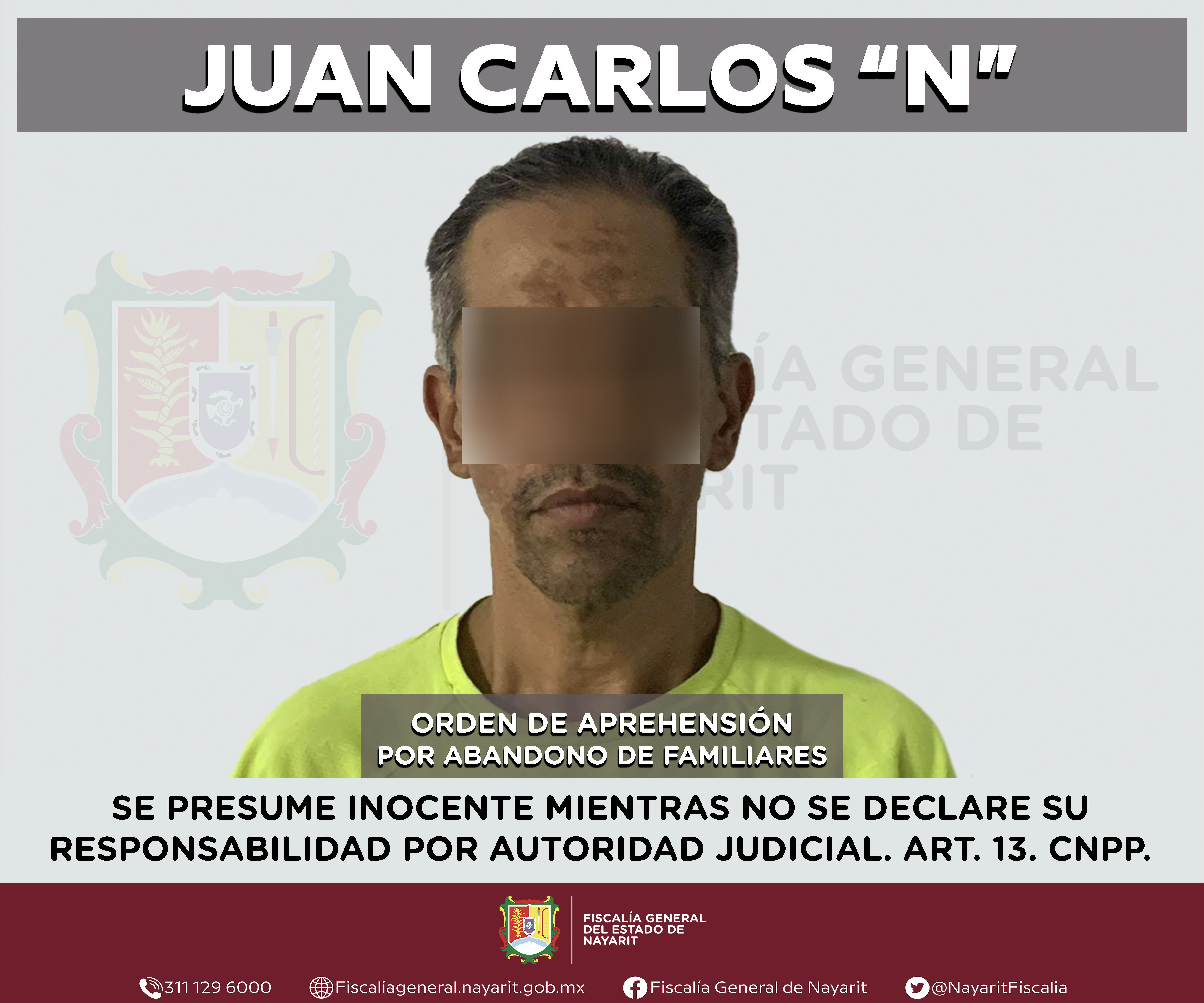 La Fiscalía General de Nayarit a través de la Agencia de Investigación Criminal ejecutó una orden de aprehensión en la ciudad de Tepic contra Juan Carlos “N”, por su probable participación en hechos que para la ley configuran el delito de aband...