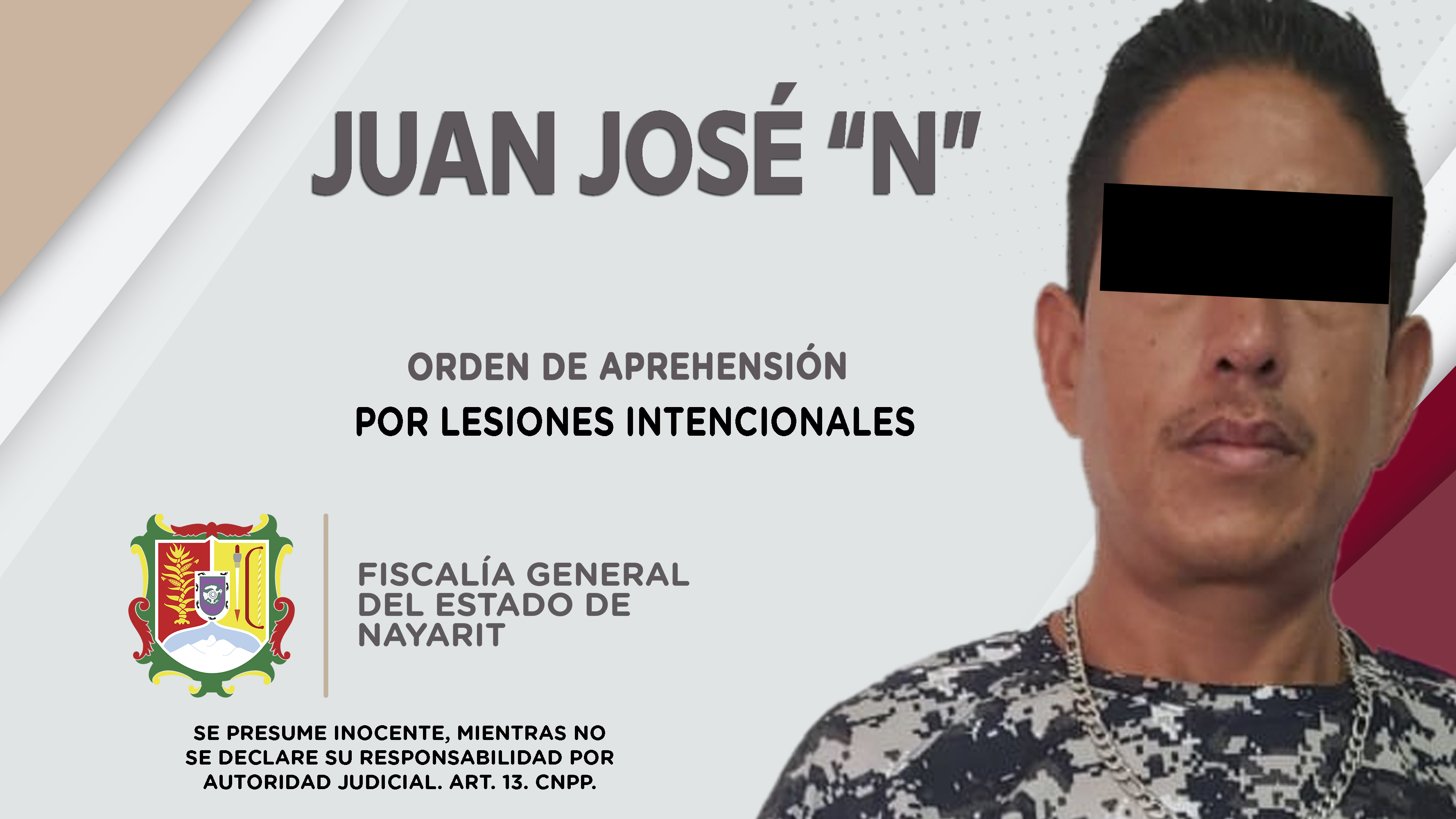 En el municipio de Ruiz, elementos de la Agencia de Investigación Criminal de Nayarit dieron cumplimiento a una orden de aprehensión que se obsequió contra Juan José “N”, por su probable participación en hechos que la ley califica como delito de...