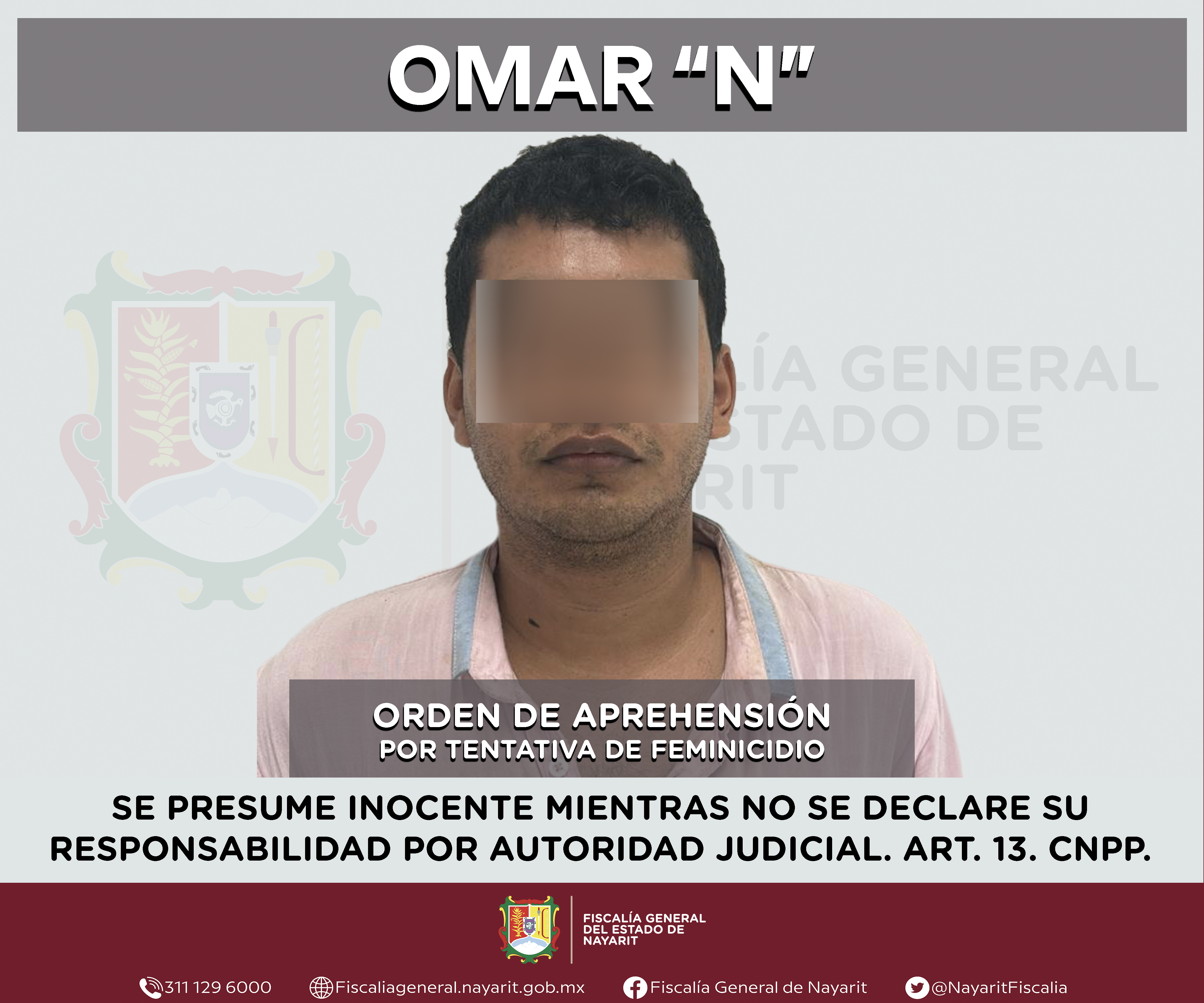 La Fiscalía General del Estado a través de la Agencia de Investigación Criminal dio cumplimiento a una orden de aprehensión en la localidad Las Varas, municipio de Compostela contra Omar “N”, por su presunta participación en hechos que según ap...