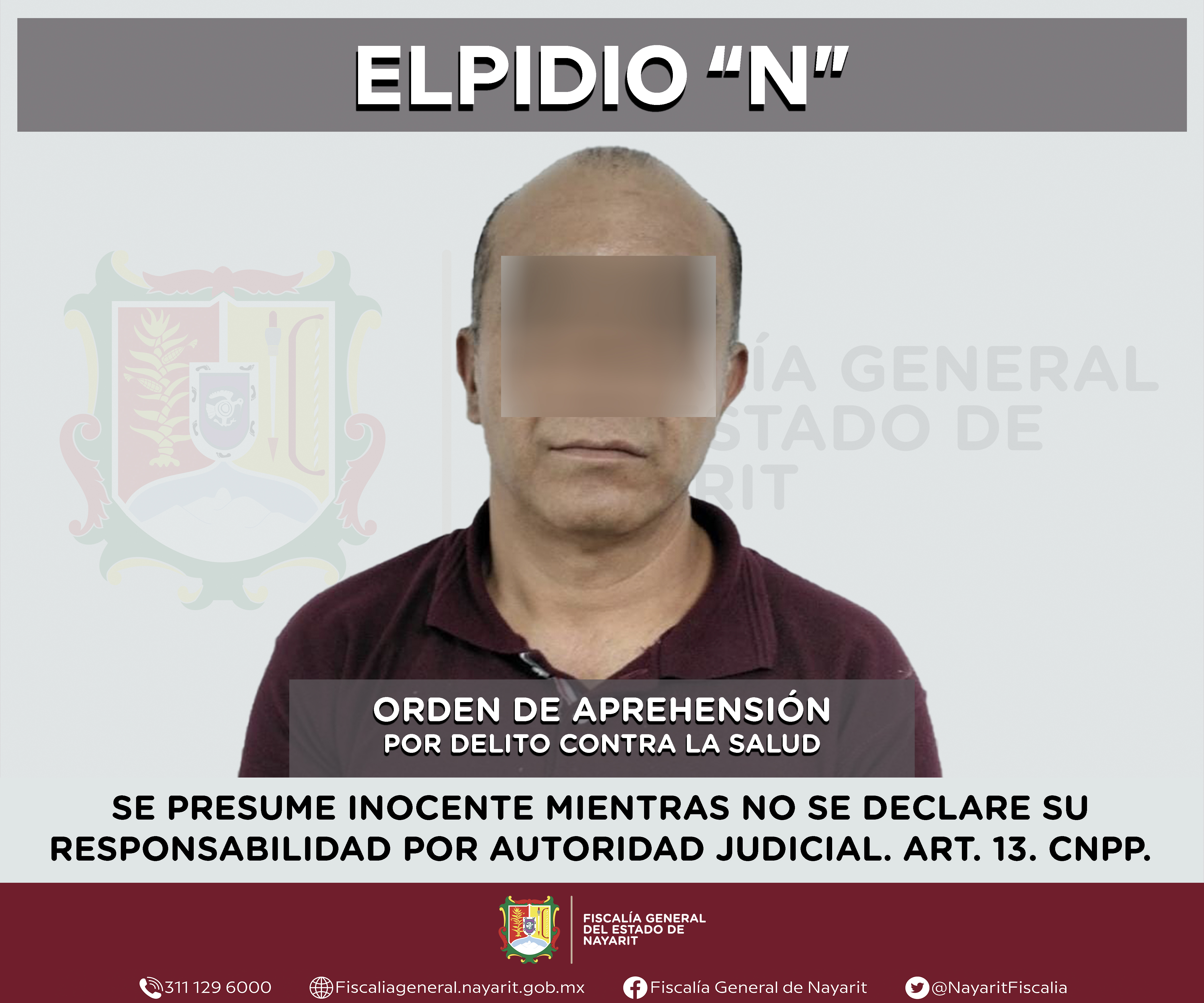 Elementos de la Agencia de Investigación Criminal de Nayarit ejecutaron una orden de aprehensión en la ciudad de Tepic contra Elpidio “N”, por su presunta participación en hechos que bajo apreciación de la ley configuran el delito contra la salud...