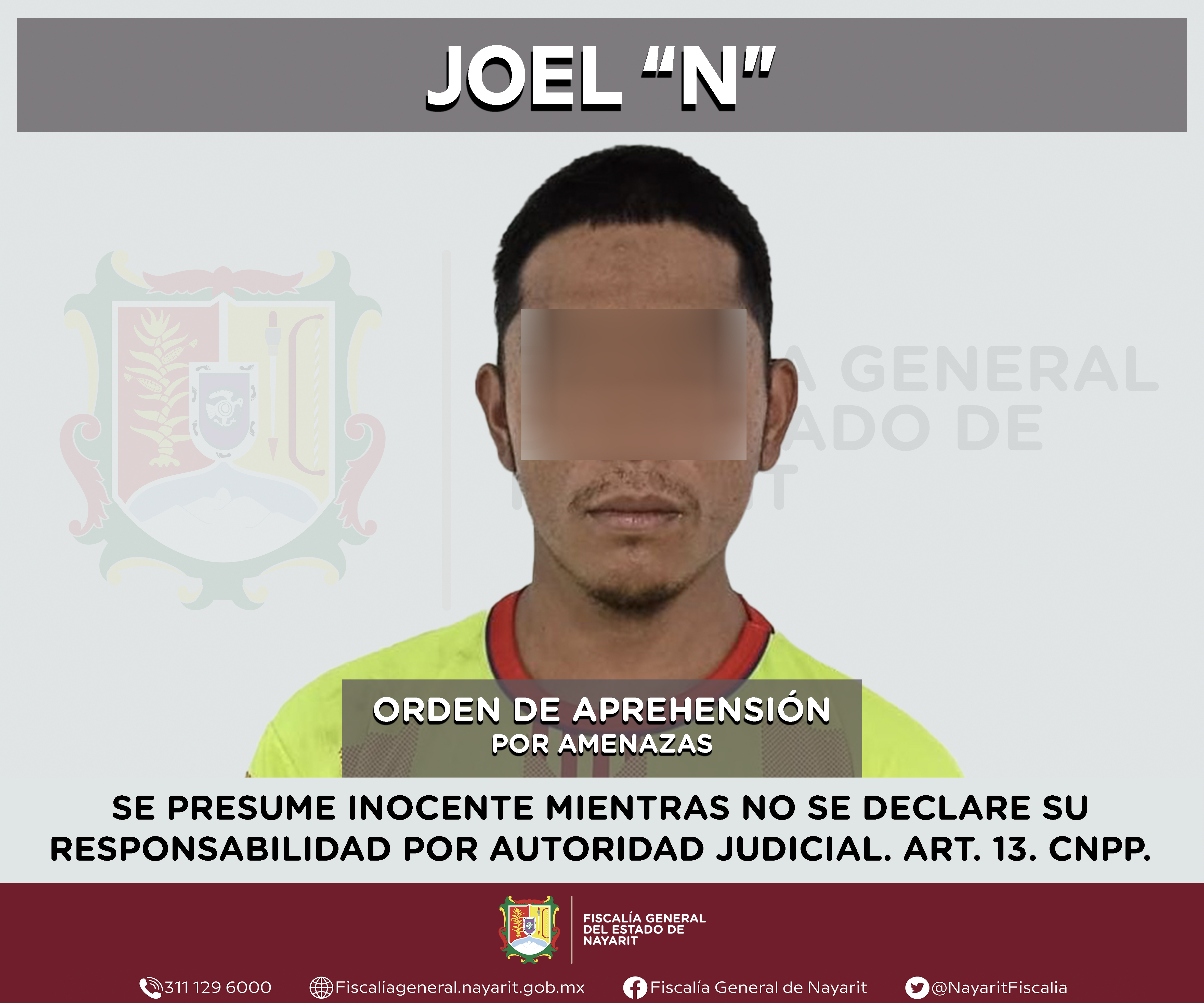 Elementos de la Agencia de Investigación Criminal de Nayarit ejecutaron una orden de aprehensión en la ciudad de Tepic contra Joel “N”, por su presunta participación en hechos que bajo apreciación de la ley configuran el delito de amenazas, comet...