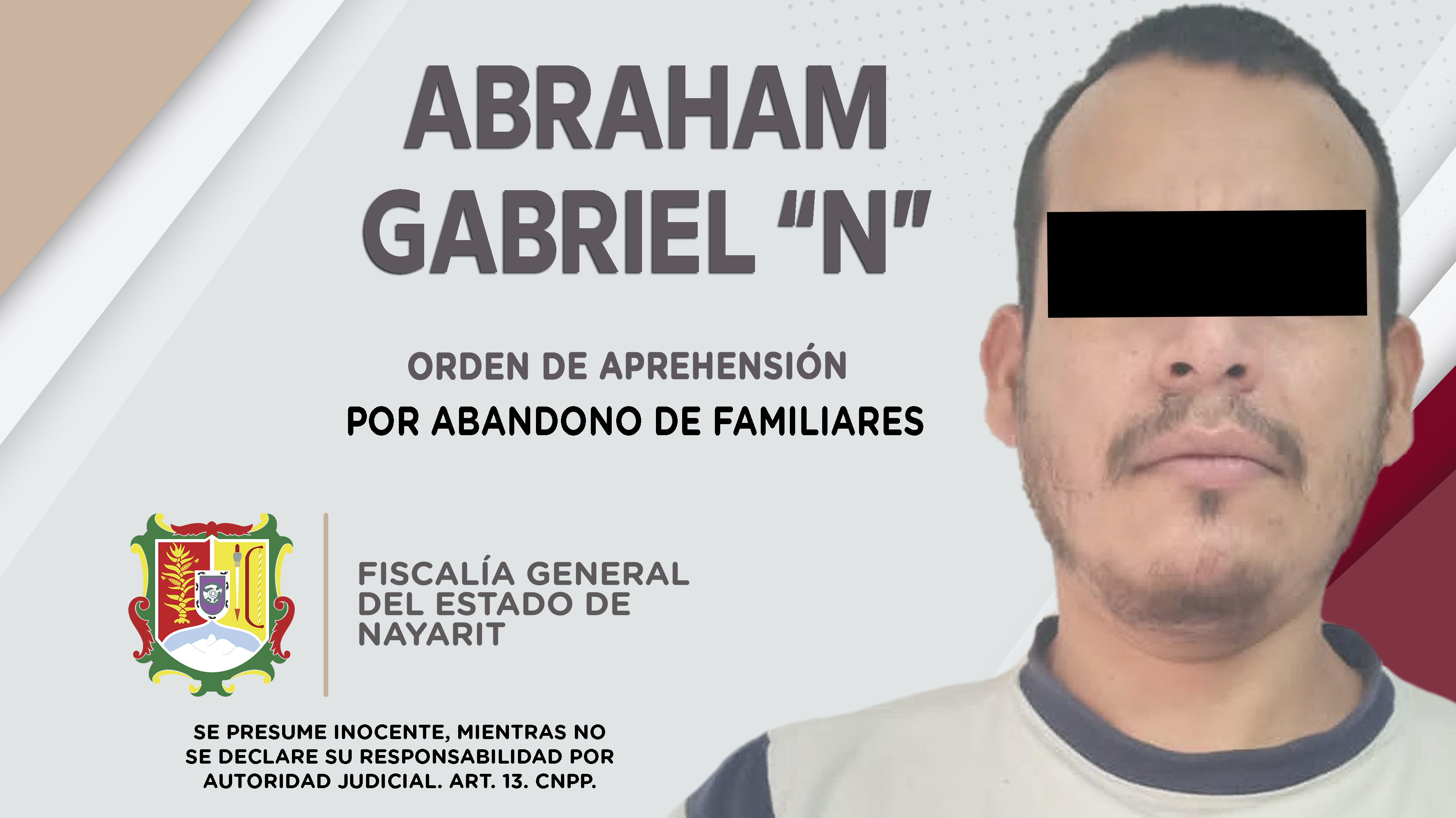 La Fiscalía General de Nayarit a través de la Agencia de Investigación Criminal ejecutó una orden de aprehensión en la ciudad de Tepic contra Abraham Gabriel “N”, por su presuntiva participación en hechos que según apreciación de la ley encua...