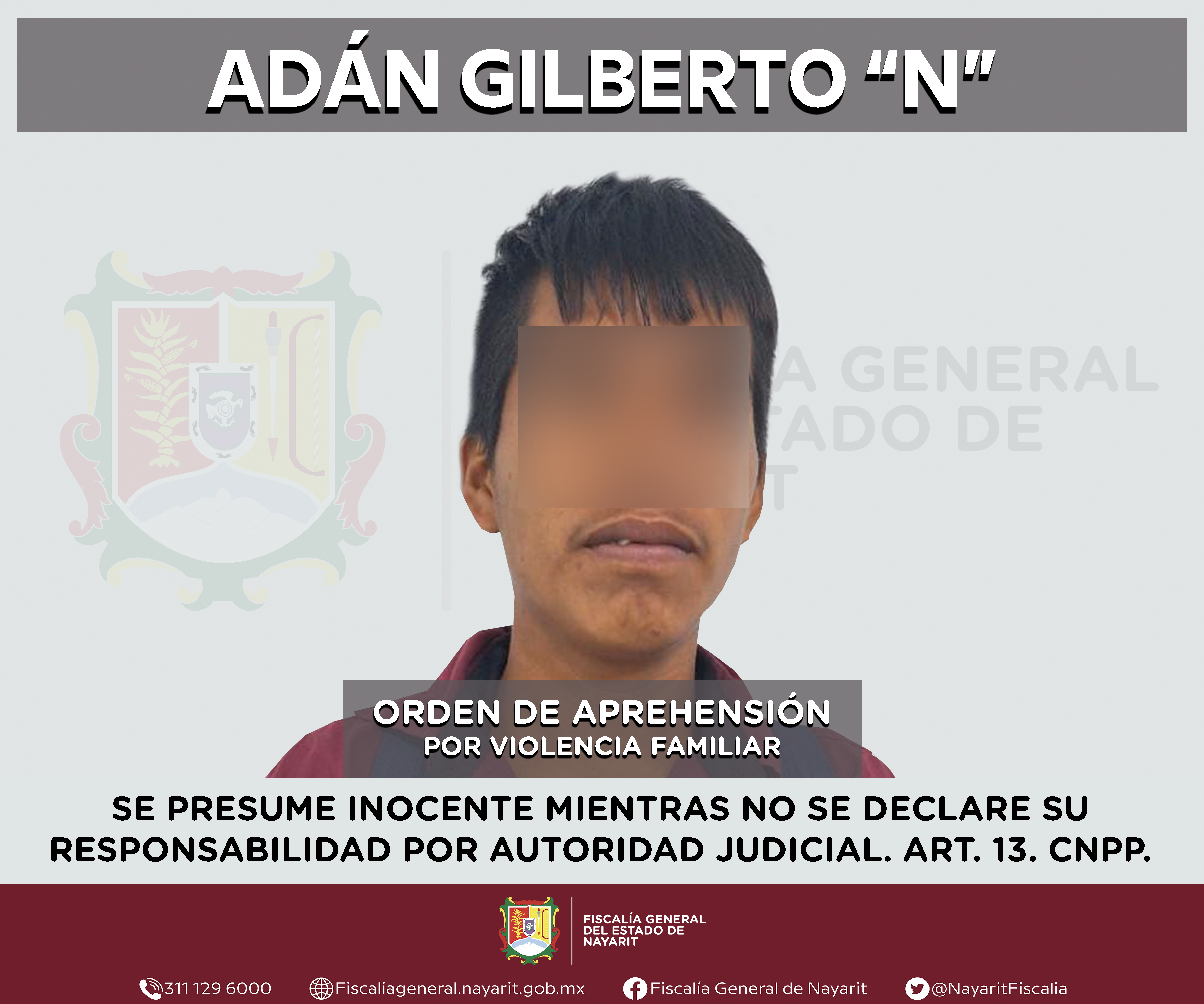 En la ciudad de Tepic, elementos de la Agencia de Investigación Criminal ejecutaron una orden de aprehensión contra Adán Gilberto “N”, por su presunta participación en hechos que según apreciación de la ley encuadran el delito de violencia fami...