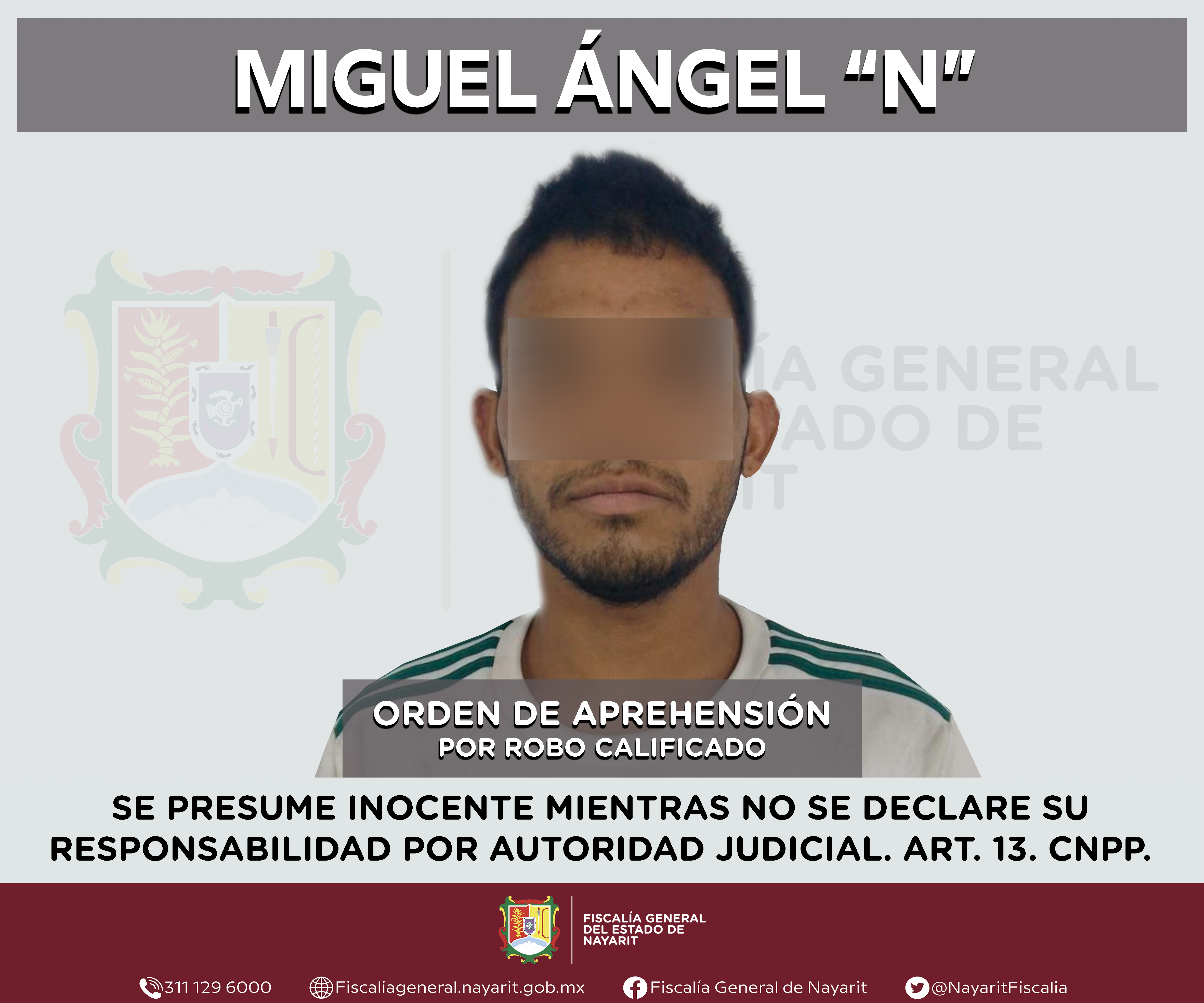 Elementos de la Agencia de Investigación Criminal de Nayarit ejecutaron una orden de aprehensión en la ciudad de Tepic contra Miguel Ángel “N”, por su presunta participación en hechos que según apreciación de la ley encuadran el delito de robo ...