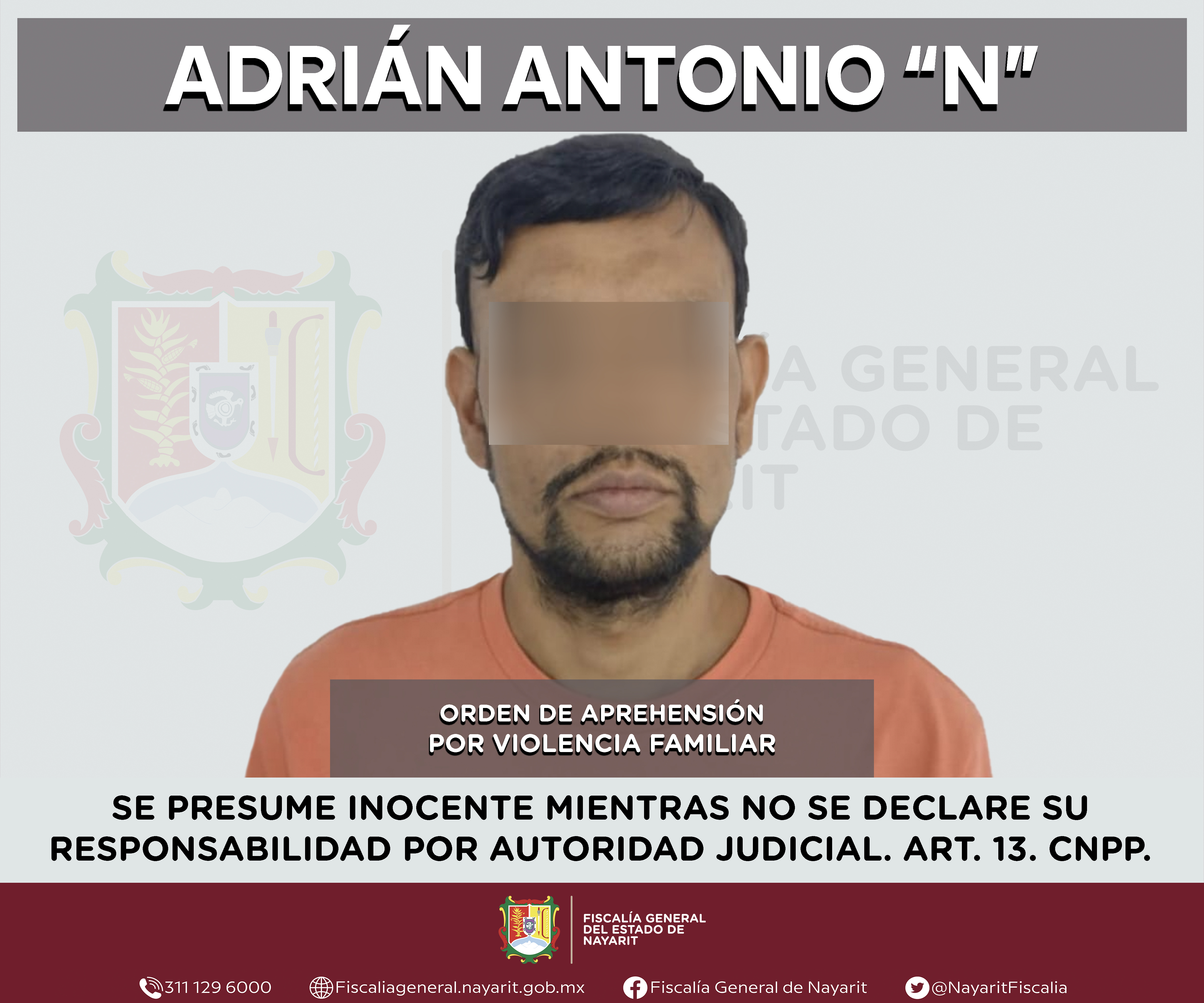 La Fiscalía General del Estado a través de la Agencia de Investigación Criminal dio cumplimiento a una orden de aprehensión en la capital nayarita contra Adrián Antonio “N”, por su presunta participación en hechos que según apreciación de la ...