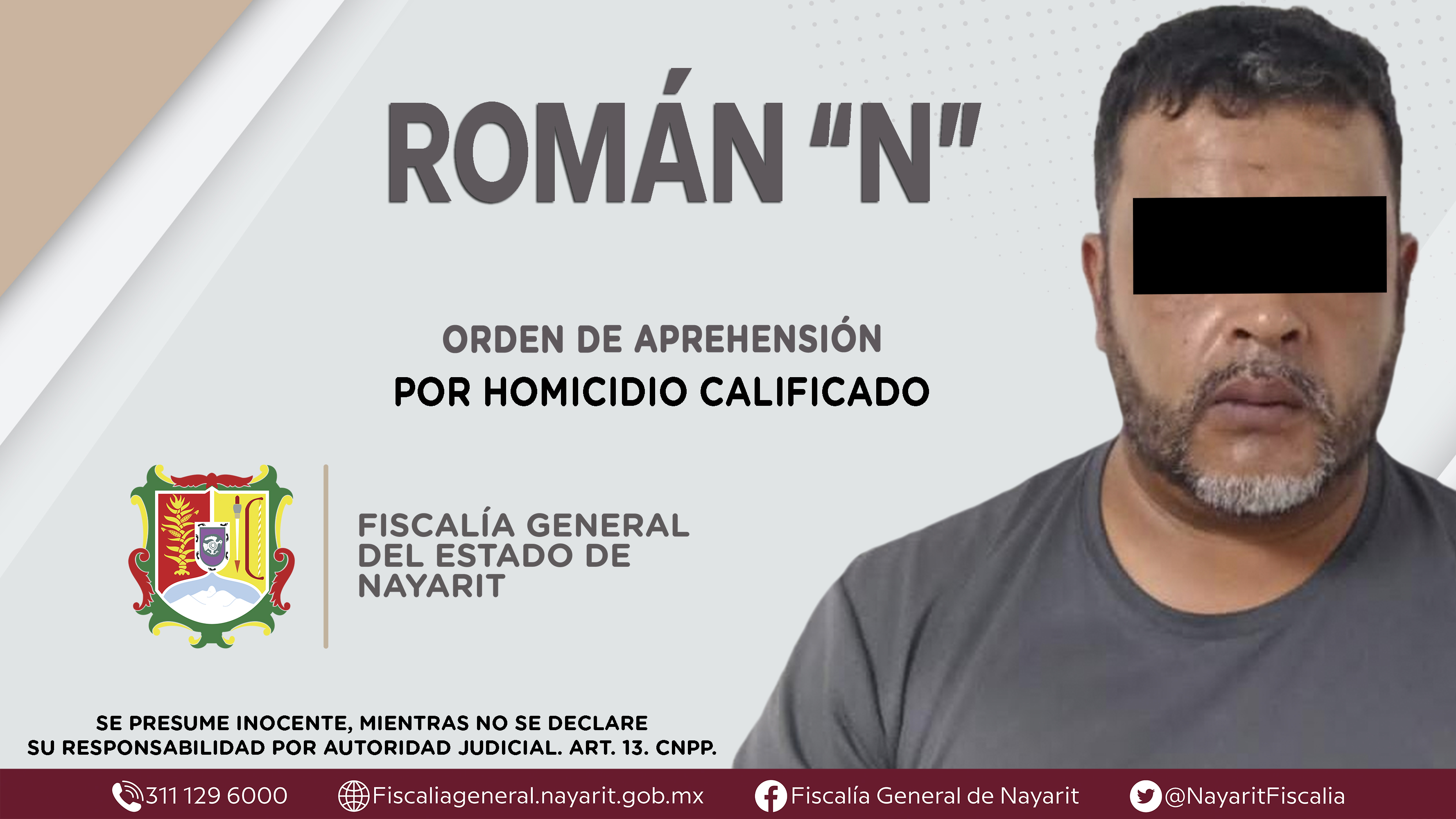 En colaboración con la Fiscalía General de la Ciudad de México, la Fiscalía General de Nayarit a través de la Agencia de Investigación Criminal ejecutó una orden de aprehensión en el municipio de Bahía de Banderas contra Román “N”, por su p...