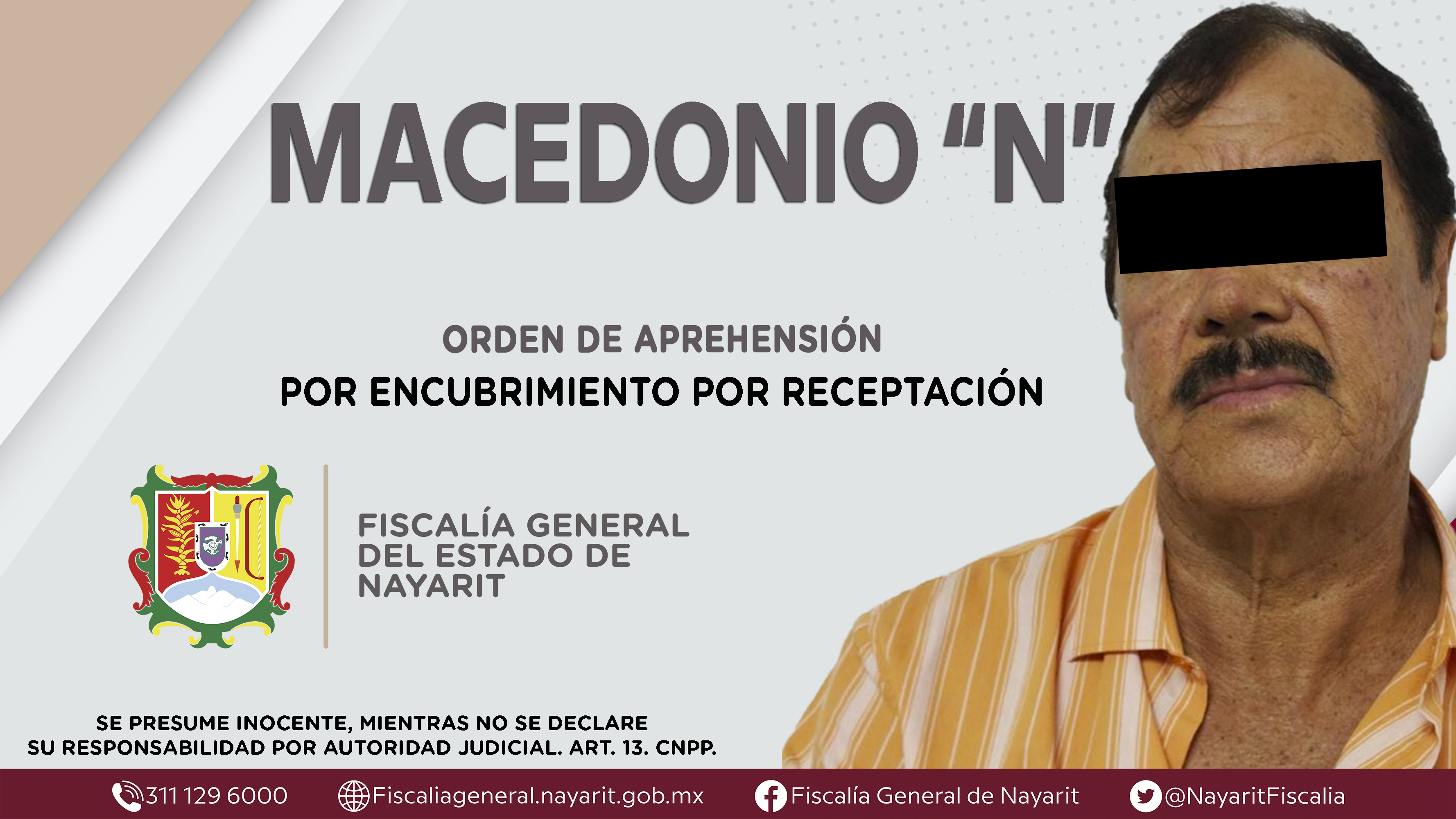 La Fiscalía General del Estado a través de la Agencia de Investigación Criminal dio cumplimiento a una orden de aprehensión en la capital nayarita contra Macedonio “N”, por su presunta participación en hechos que según apreciación de la ley en...