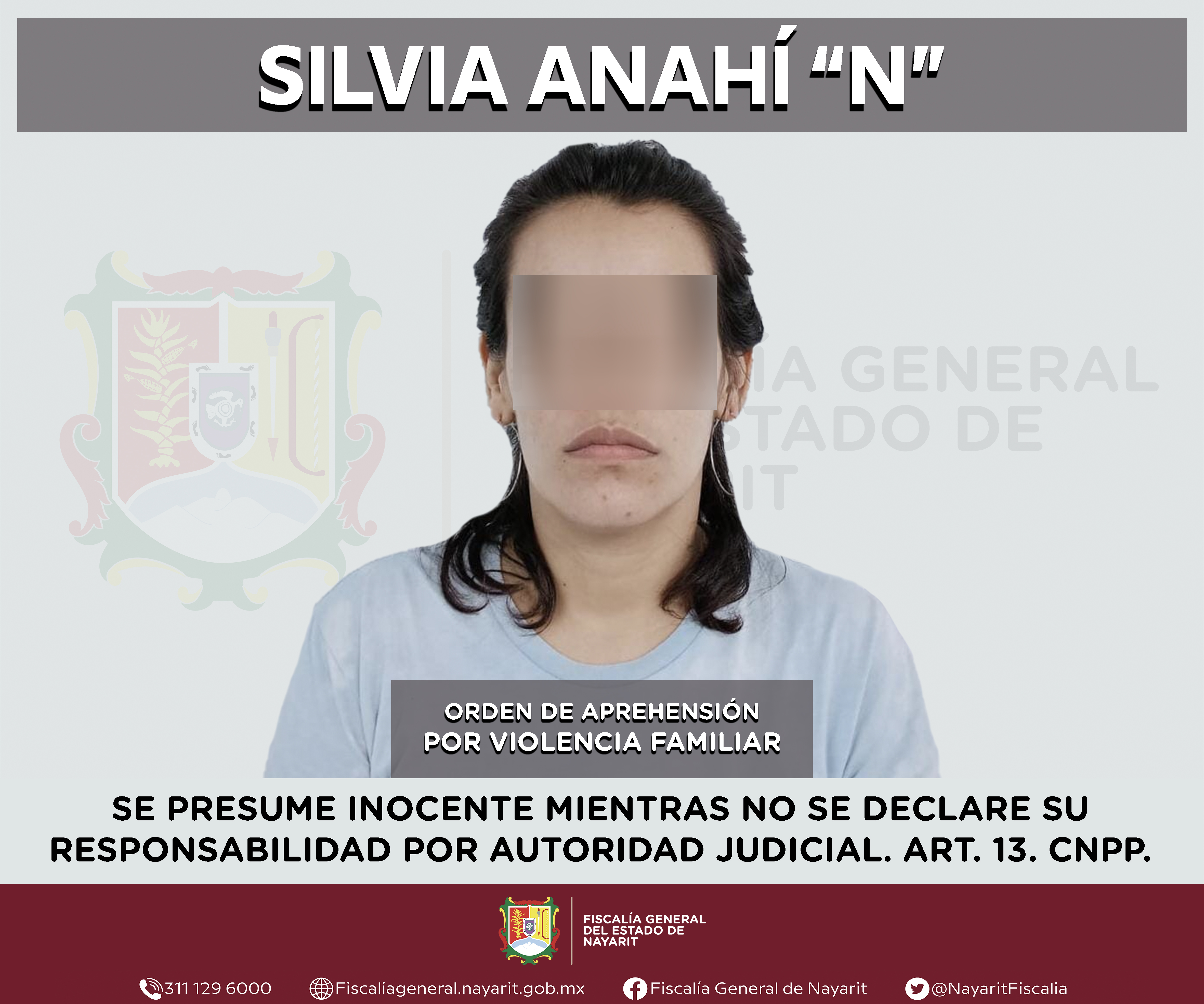 Elementos de la Agencia de Investigación Criminal de Nayarit ejecutaron una orden de aprehensión en la ciudad de Tepic contra Silvia Anahí “N”, por su presunta participación en hechos que bajo apreciación de la ley configuran el delito de violen...