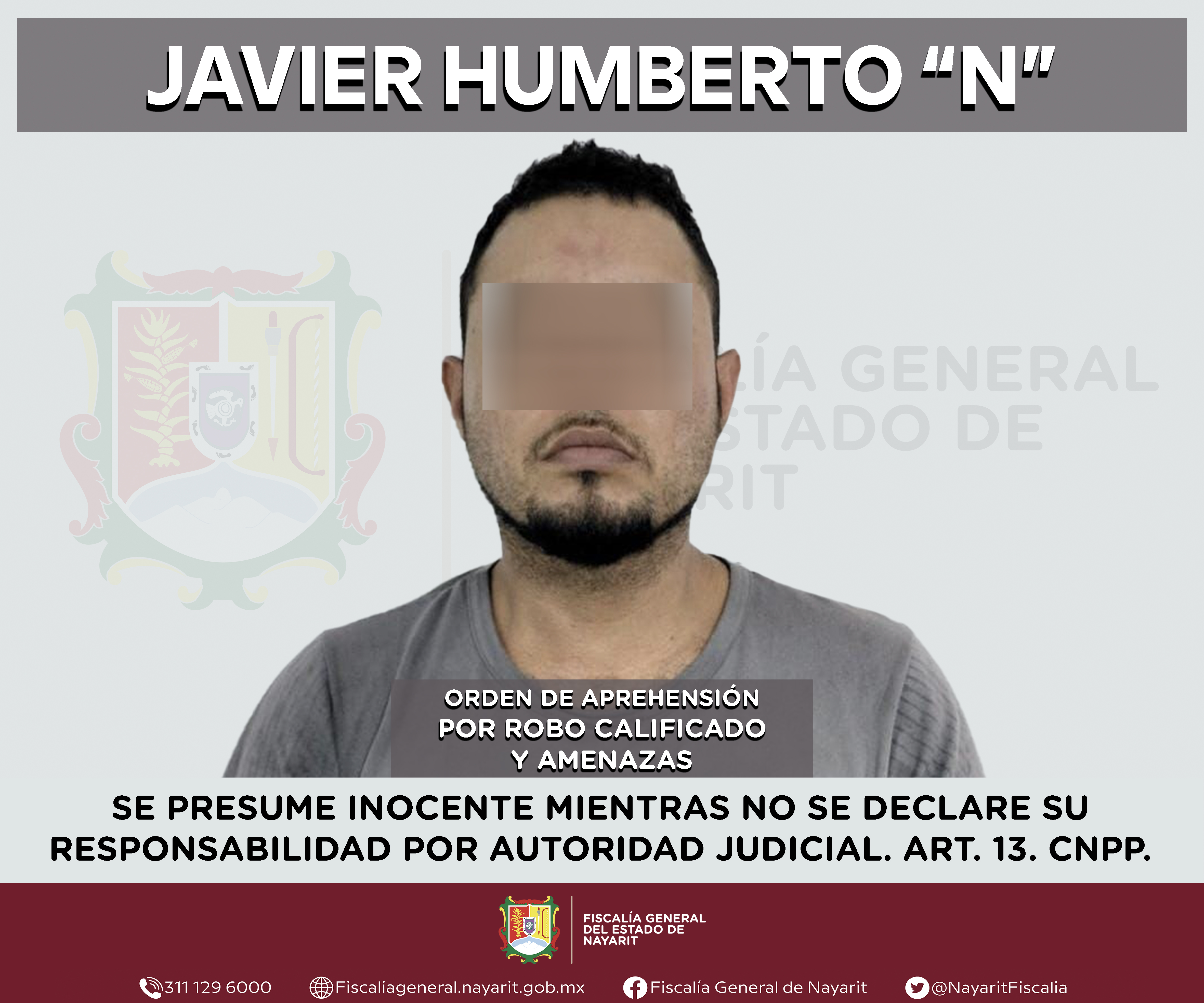 La Fiscalía General del Estado a través de la Agencia de Investigación Criminal dio cumplimiento a una orden de aprehensión en la ciudad de Tepic contra Javier Humberto “N”, por su presunta participación en hechos que según apreciación de la l...