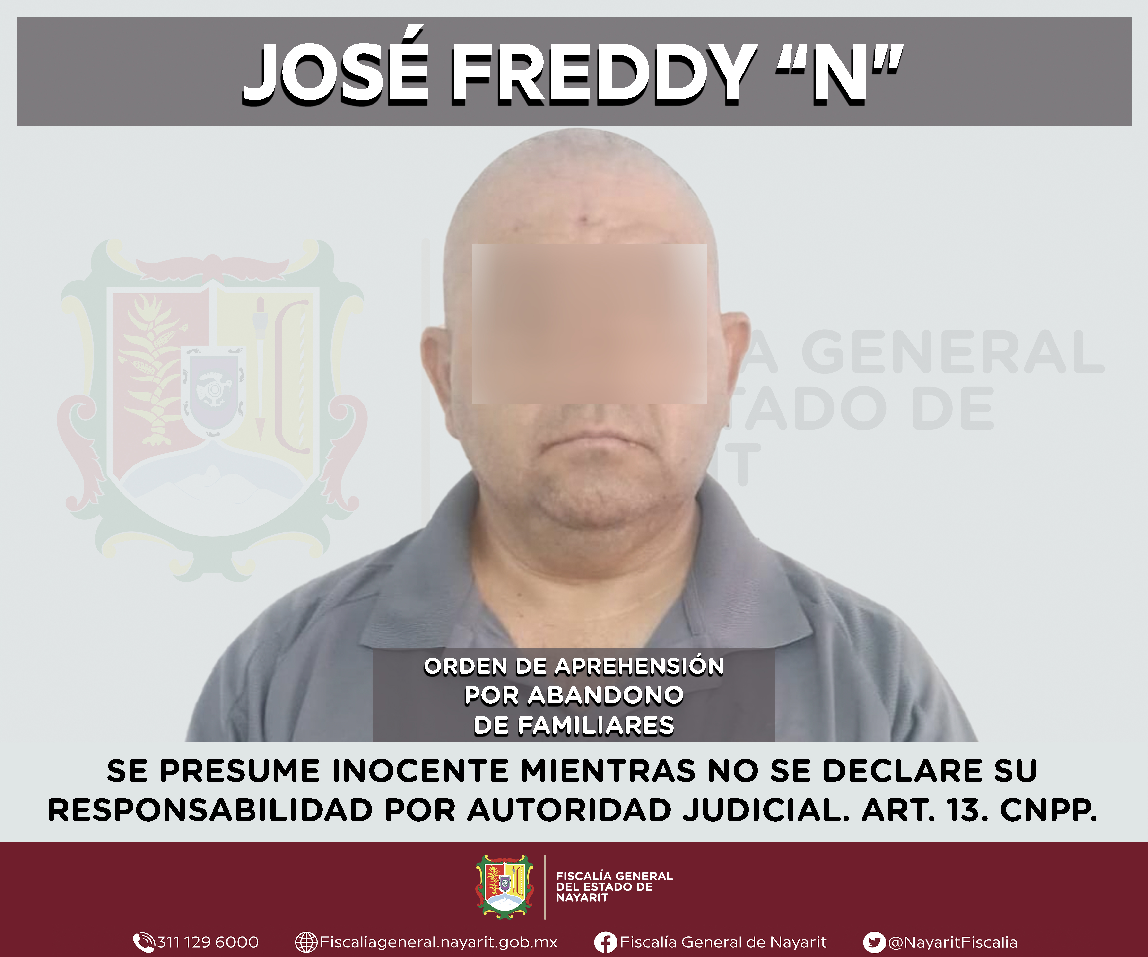 La Fiscalía General del Estado a través de la Agencia de Investigación Criminal dio cumplimiento a una orden de aprehensión en la ciudad de Tepic contra José Freddy “N”, por su presunta participación en hechos que según apreciación de la ley ...