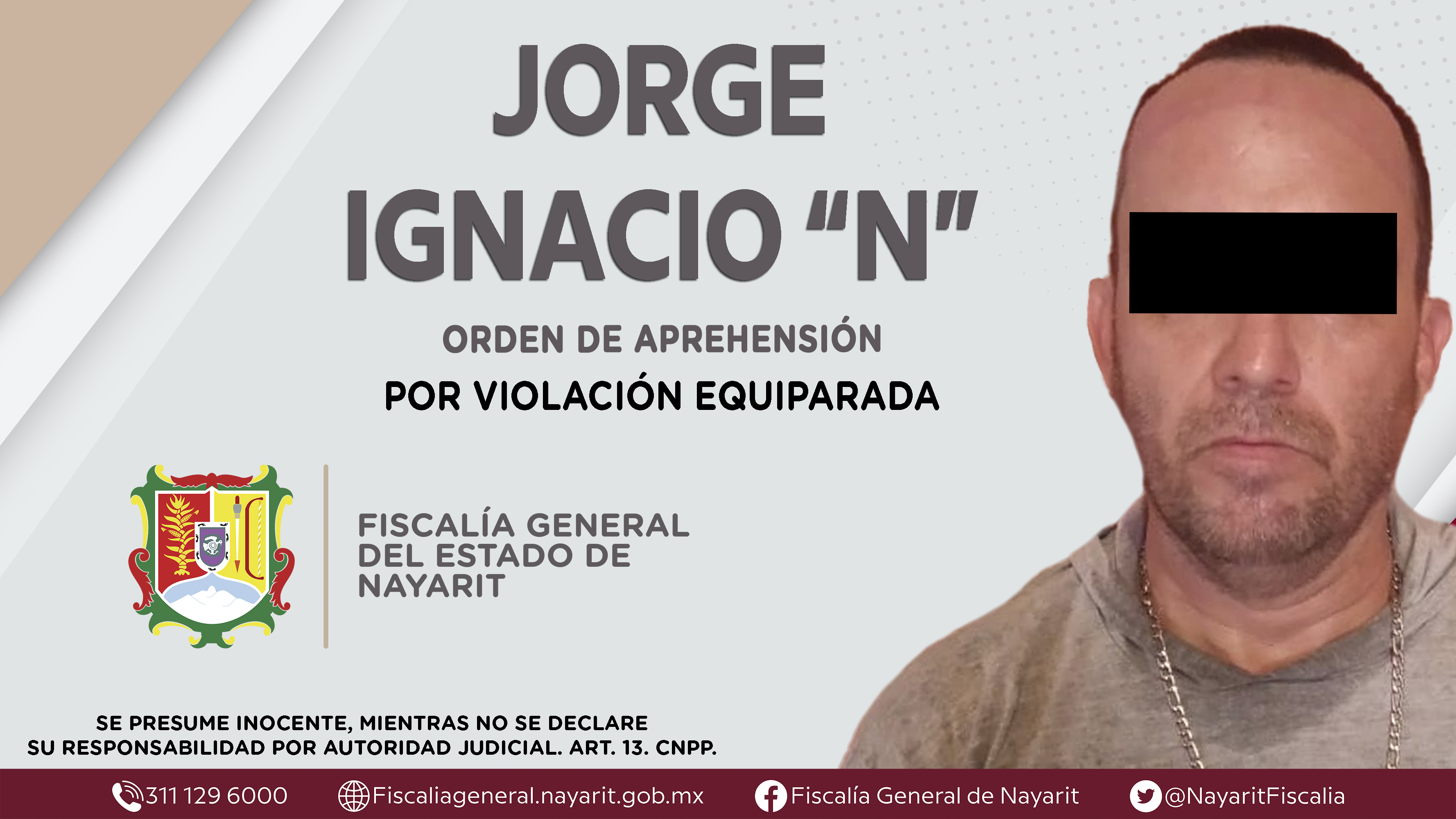 La Fiscalía General del Estado a través de la Agencia de Investigación Criminal dio cumplimiento a una orden de aprehensión en la localidad El Capomo, municipio de Compostela contra Jorge Ignacio “N”, por su presunta participación en hechos que ...