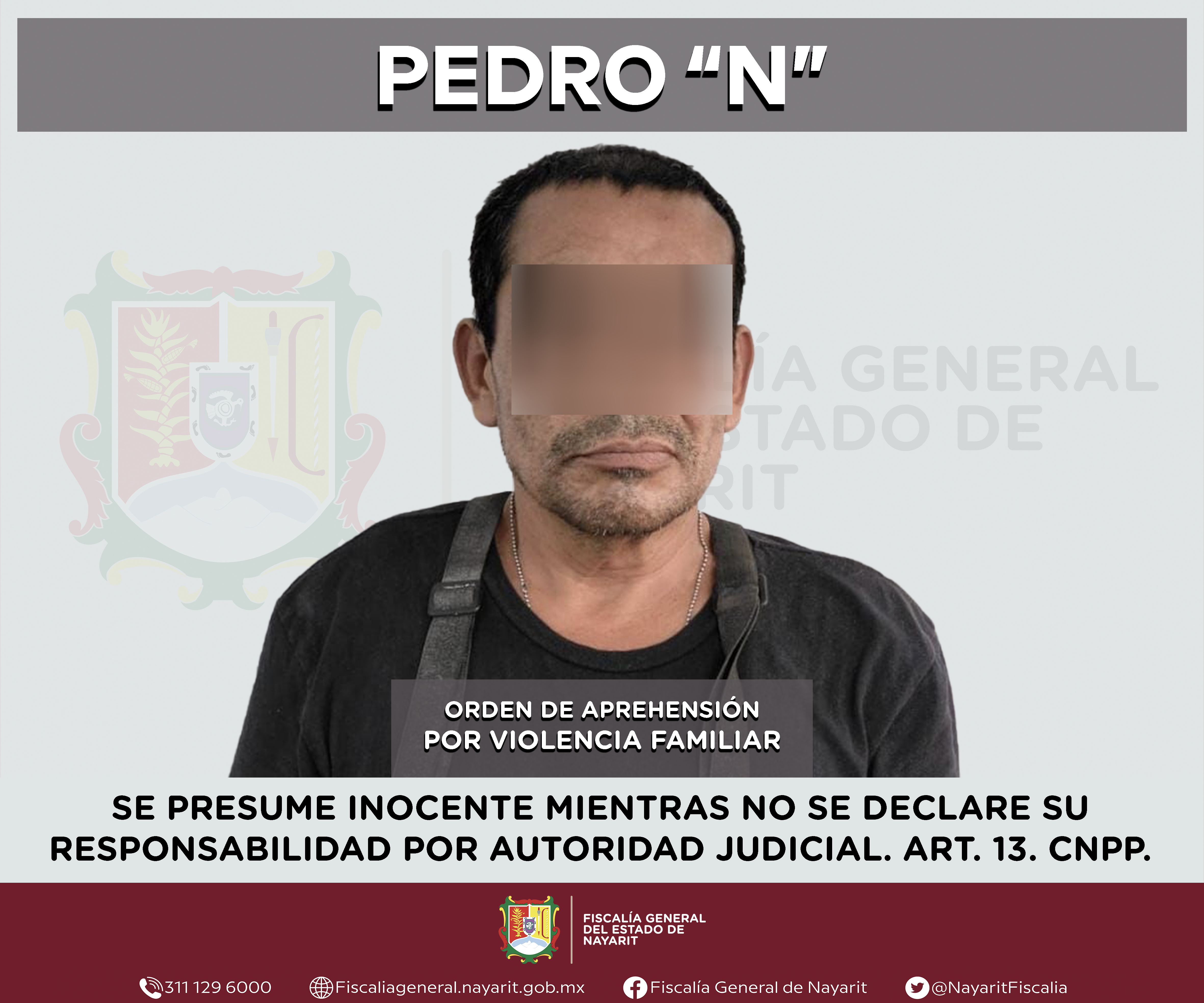Elementos de la Agencia de Investigación Criminal de Nayarit ejecutaron una orden de aprehensión en la capital nayarita contra Pedro “N”, por su presunta participación en hechos que bajo apreciación de la ley configuran el delito de violencia fam...
