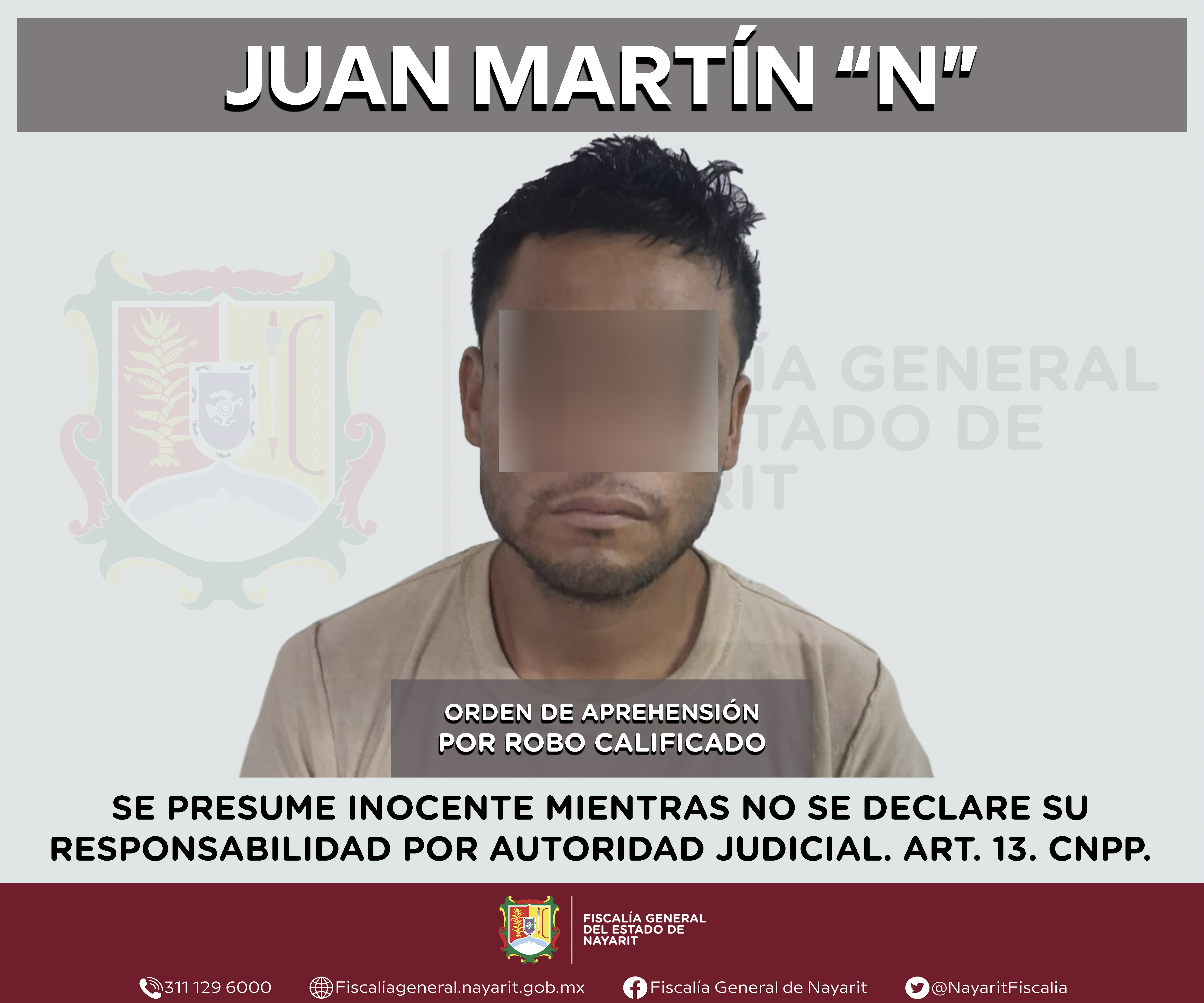 Boletín 1135/2024 | SE LE EJECUTA ORDEN DE APREHENSIÓN POR ROBO CALIFICADO