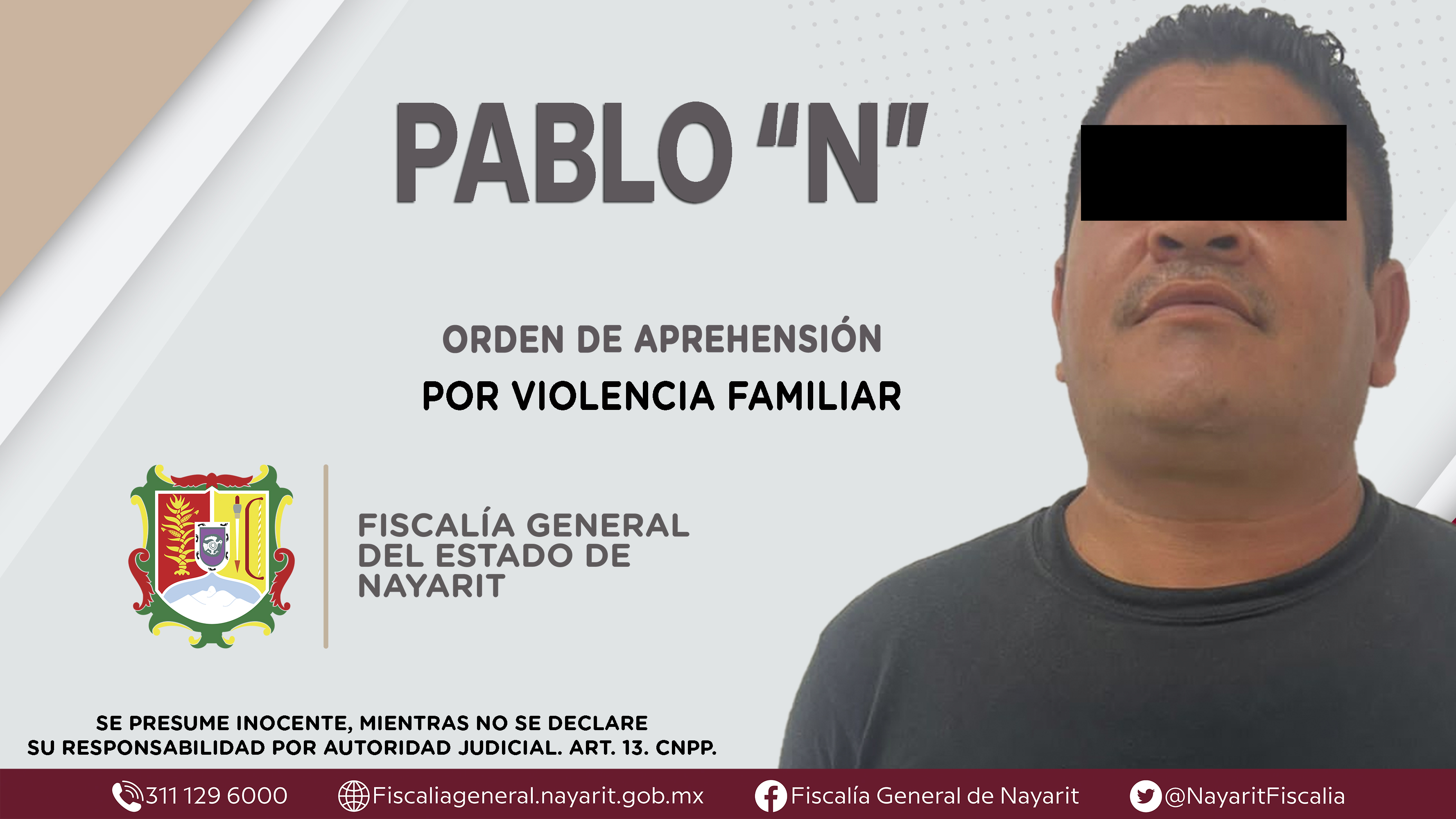 La Fiscalía General del Estado a través de la Agencia de Investigación Criminal dio cumplimiento a una orden de aprehensión en el municipio de Bahía de Banderas contra Pablo “N”, por su presunta participación en hechos que según apreciación d...