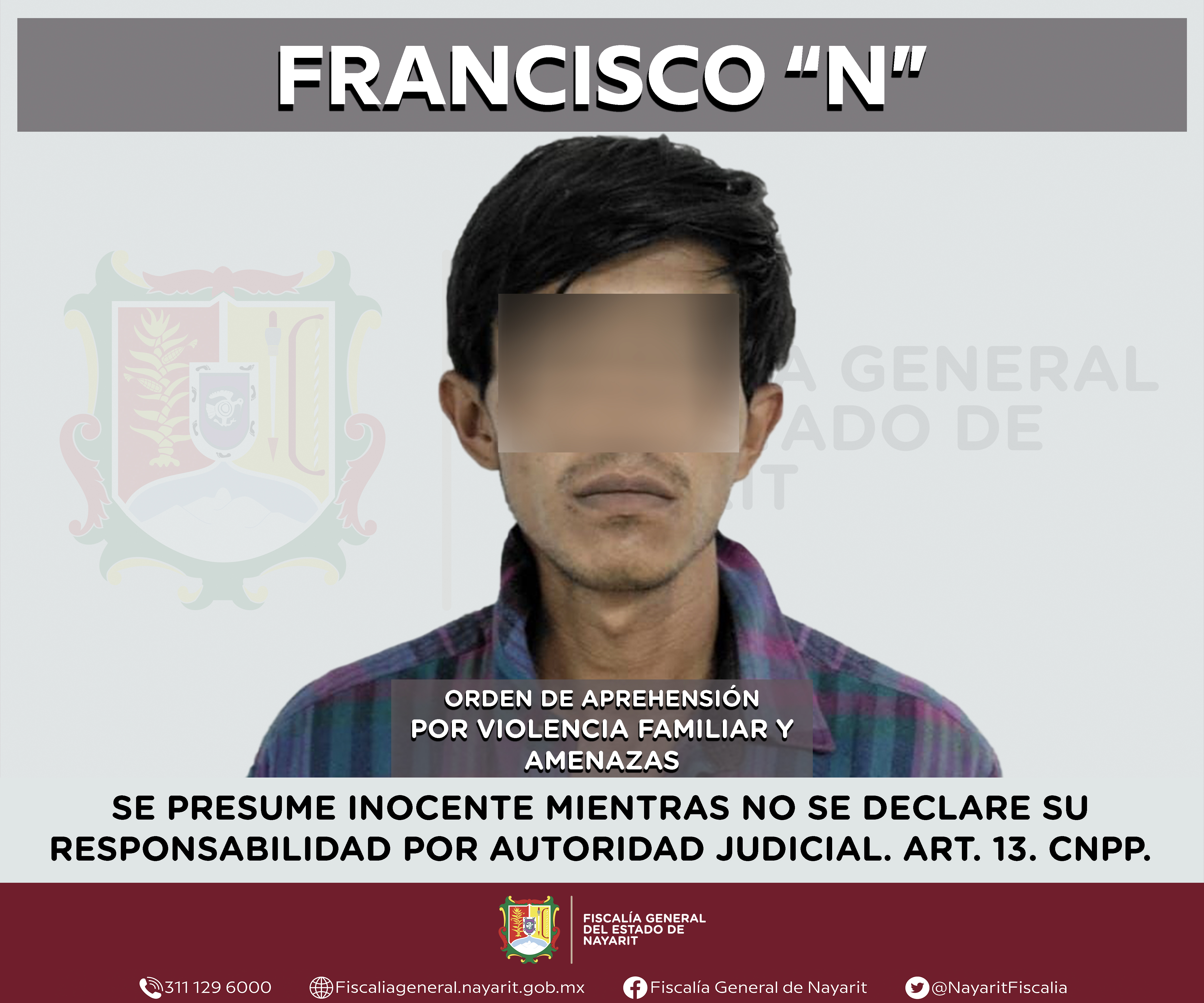 La Fiscalía General del Estado a través de la Agencia de Investigación Criminal cumplimentó una orden de aprehensión en la ciudad de Tepic contra Francisco “N”, por su presunta participación en hechos que según apreciación de la ley configura...