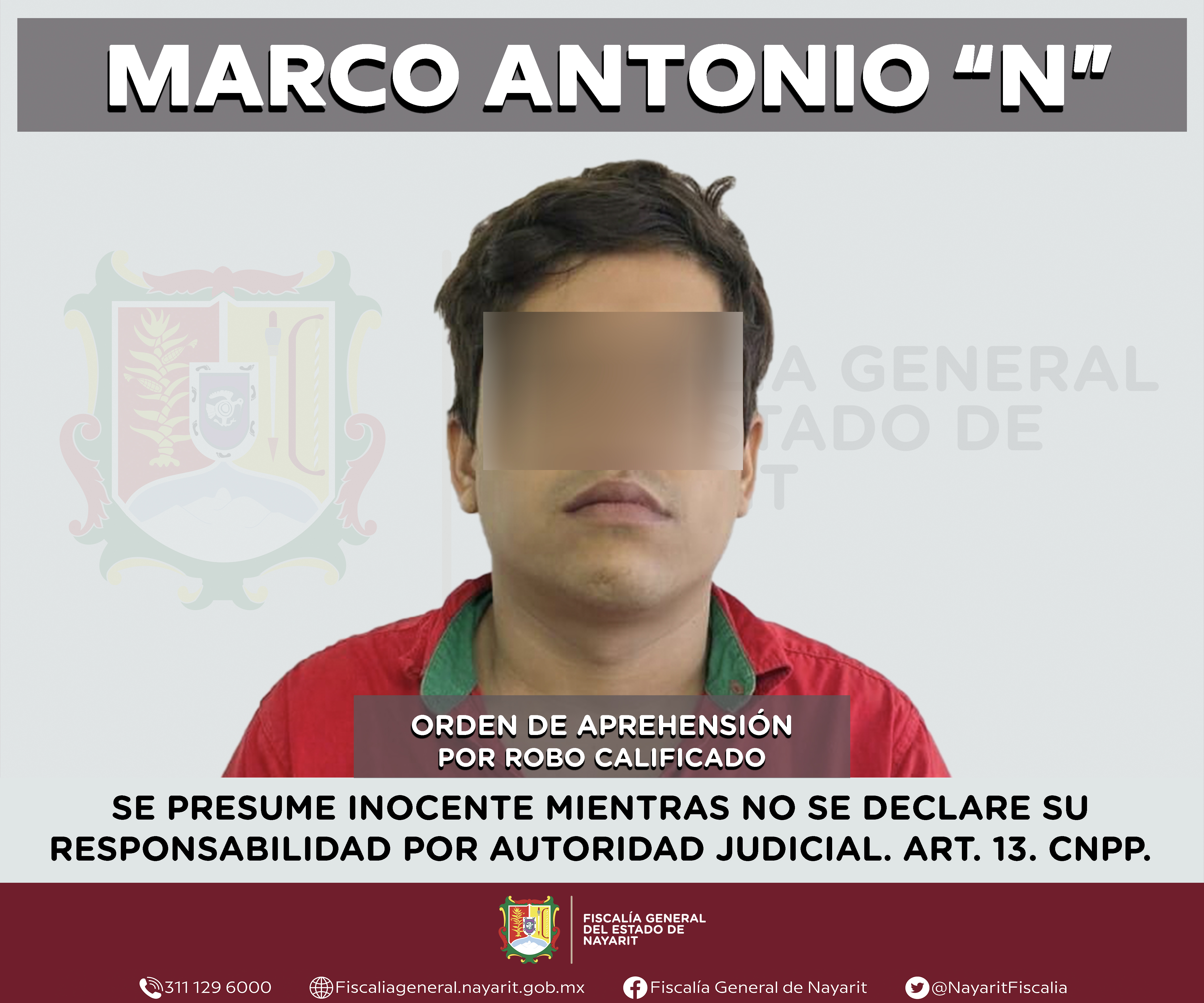 Elementos de la Agencia de Investigación Criminal cumplimentaron una orden de aprehensión en la ciudad de Tepic en contra de Marco Antonio “N”, por su probable participación en hechos que la ley tipifica como delito de robo calificado, cometido en...