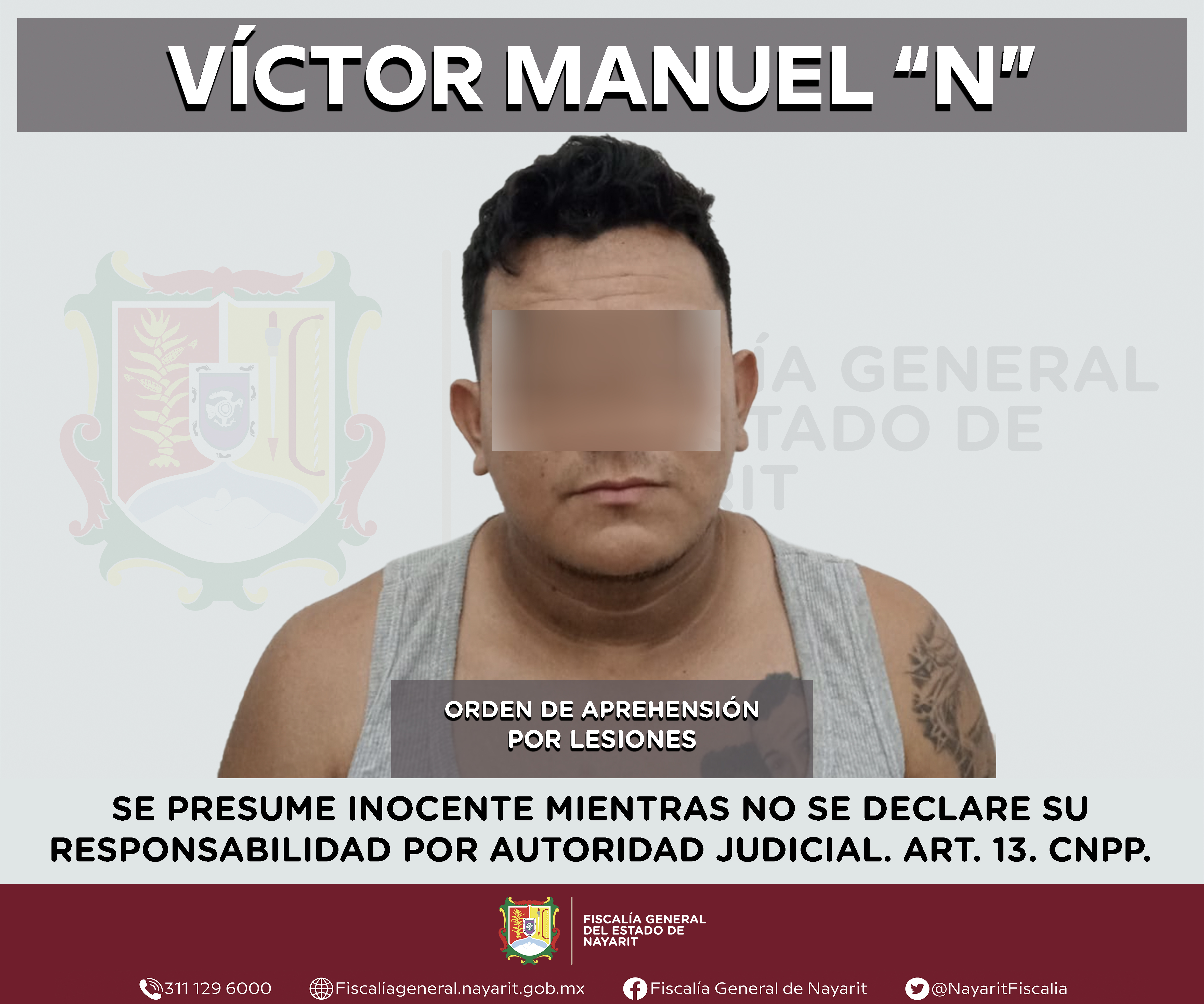 Elementos de la Agencia de Investigación Criminal de Nayarit ejecutaron una orden de aprehensión en la localidad Los Ayala, municipio de Compostela contra Víctor Manuel “N”, por su presunta participación en hechos que bajo apreciación de la ley ...