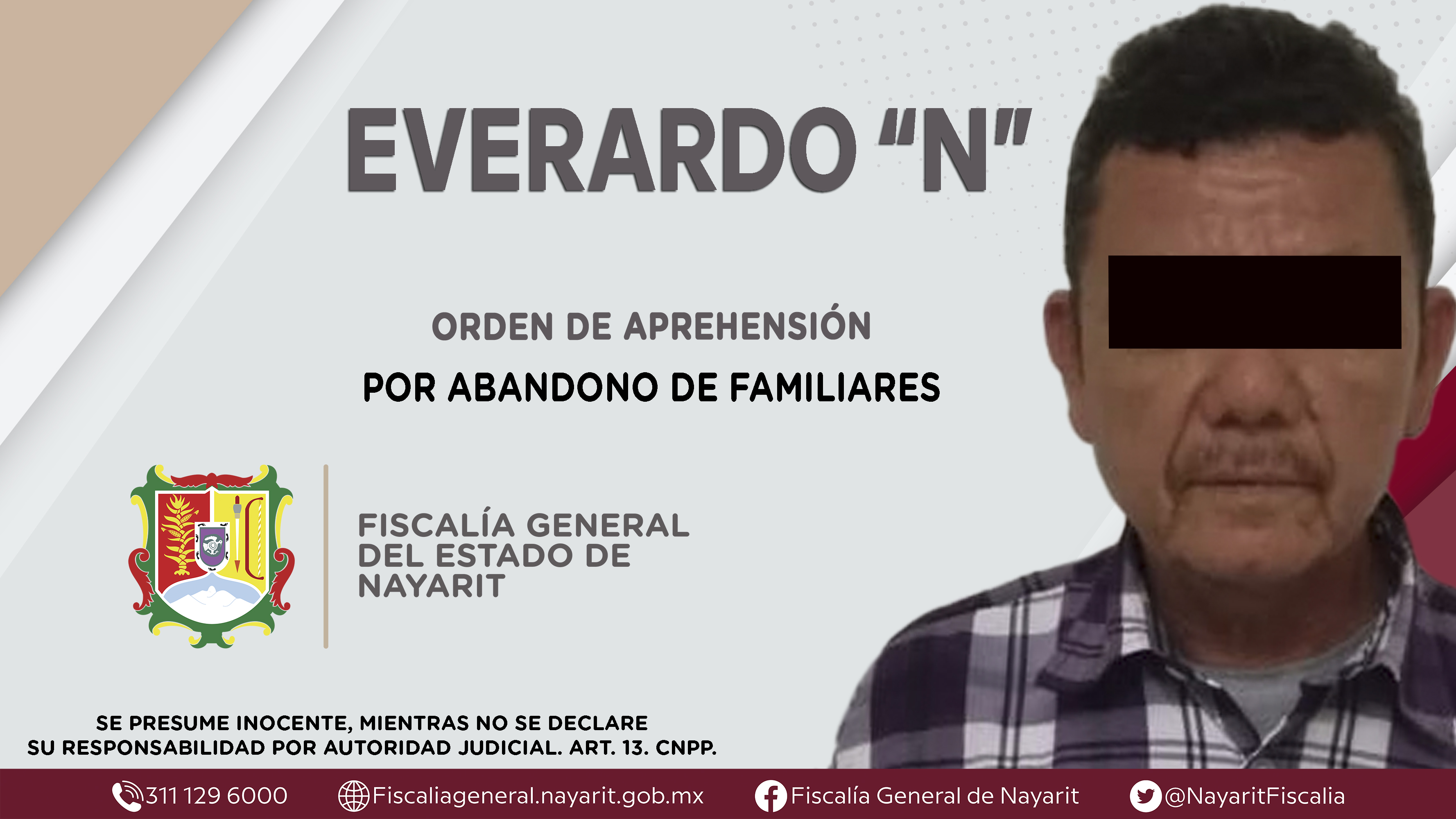 Elementos de la Agencia de Investigación Criminal dieron cumplimiento a una orden de aprehensión en la ciudad de Tepic contra Everardo “N”, por su probable participación en hechos que la ley juzga como delito de abandono de familiares, cometido en...