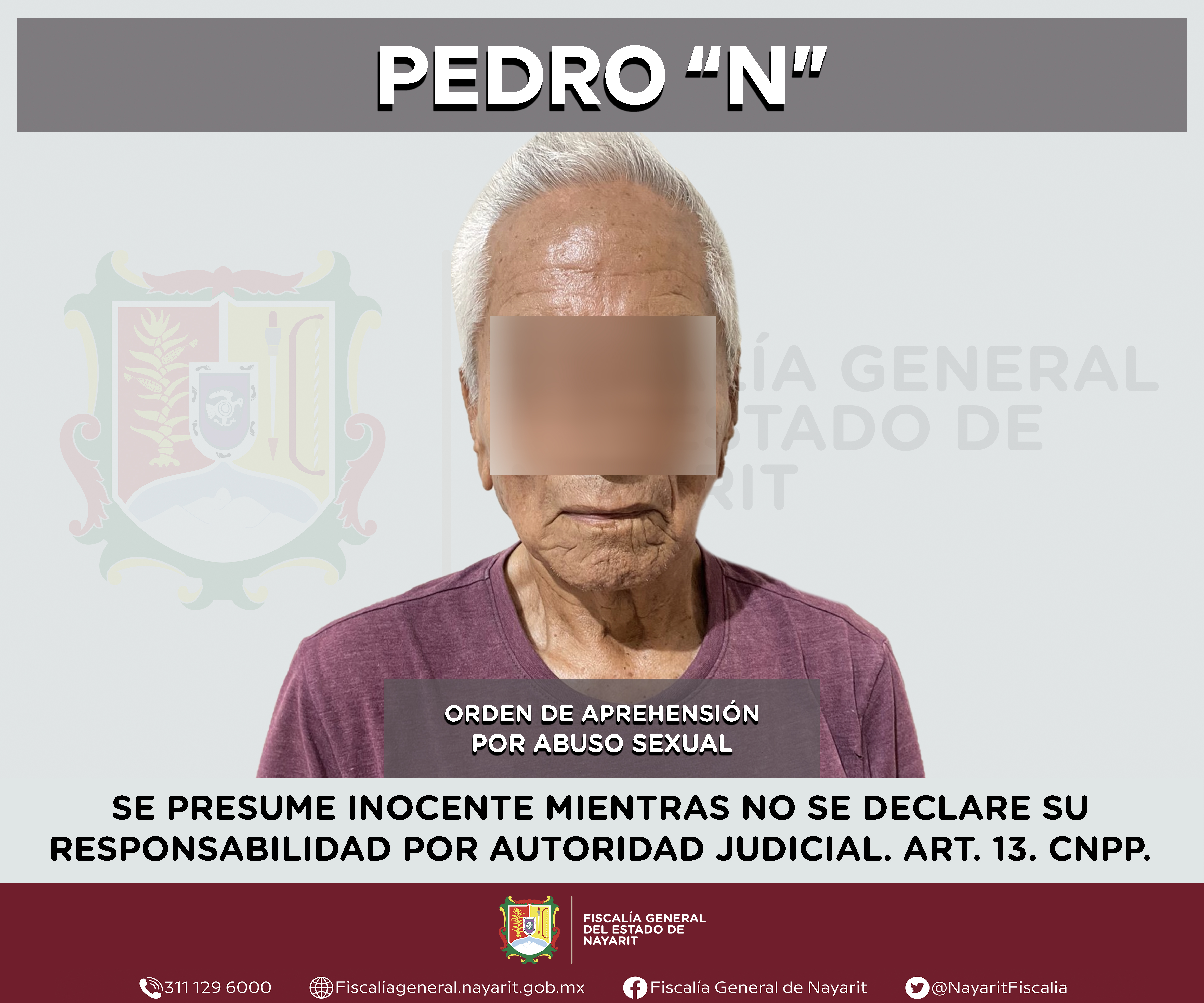 Elementos de la Agencia de Investigación Criminal de Nayarit ejecutaron una orden de aprehensión en la localidad Peñas, municipio de Tuxpan contra Pedro “N”, por su presunta participación en hechos que bajo apreciación de la ley configuran el de...