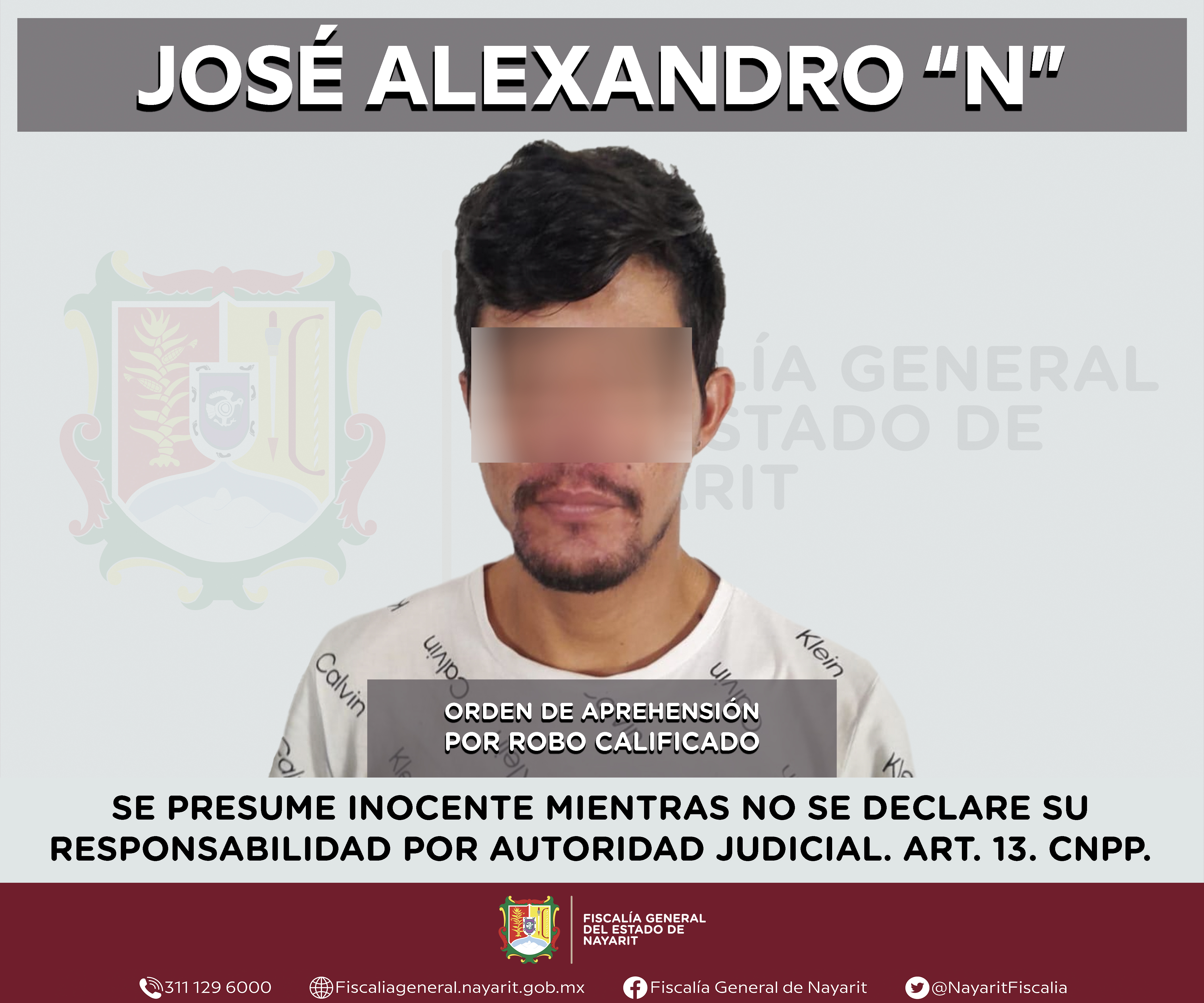 La Fiscalía General del estado de Nayarit a través de la Agencia de Investigación Criminal, ejecutó una orden de aprehensión en el interior del Centro de Readaptación Social \"Venustiano Carranza\"" contra José Alexandro “N”