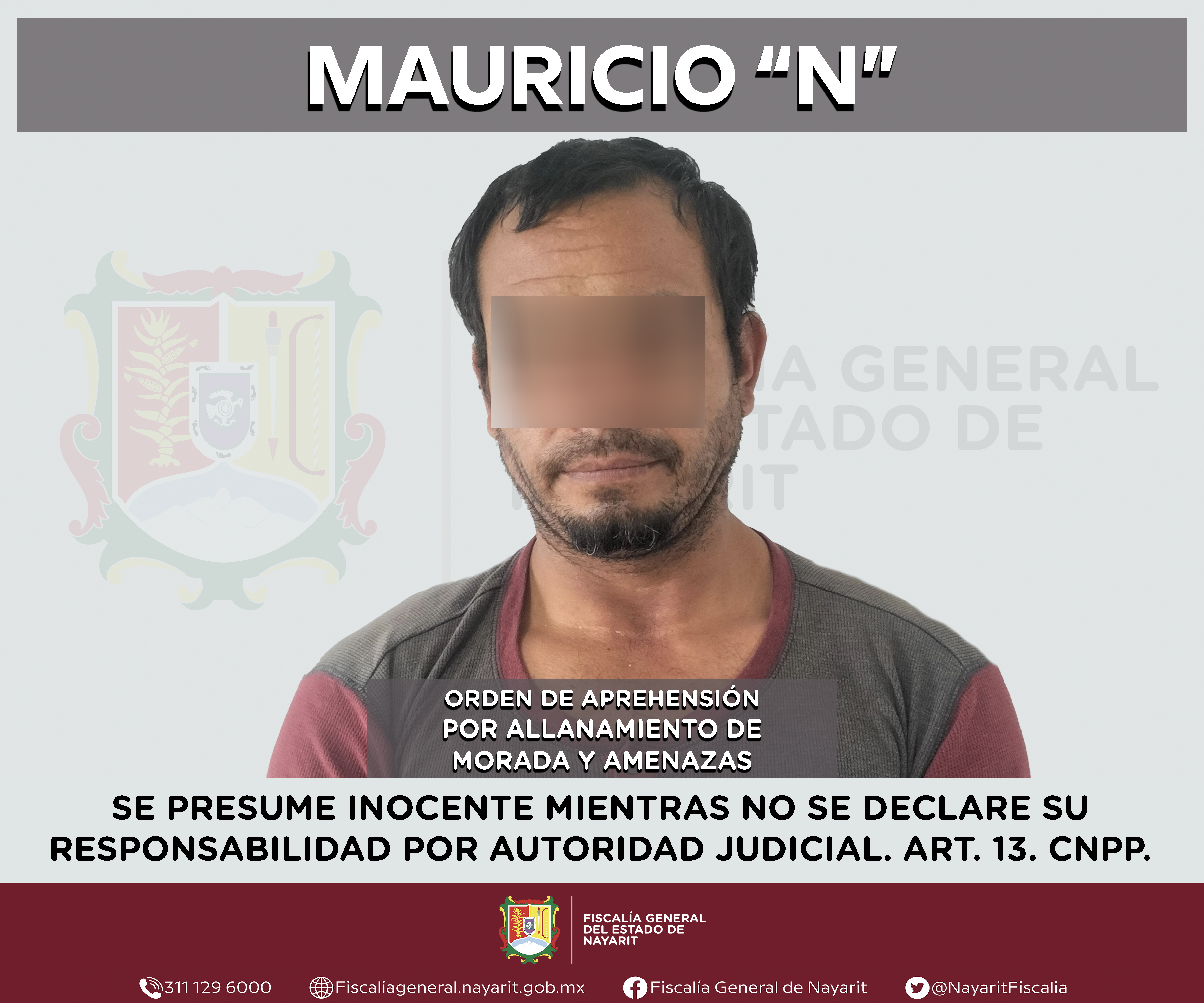 Elementos de la Agencia de Investigación Criminal de Nayarit ejecutaron una orden de aprehensión en la localidad Tequilita, municipio de San Pedro Lagunillas contra Mauricio “N”, por su presunta participación en hechos que bajo apreciación de la ...