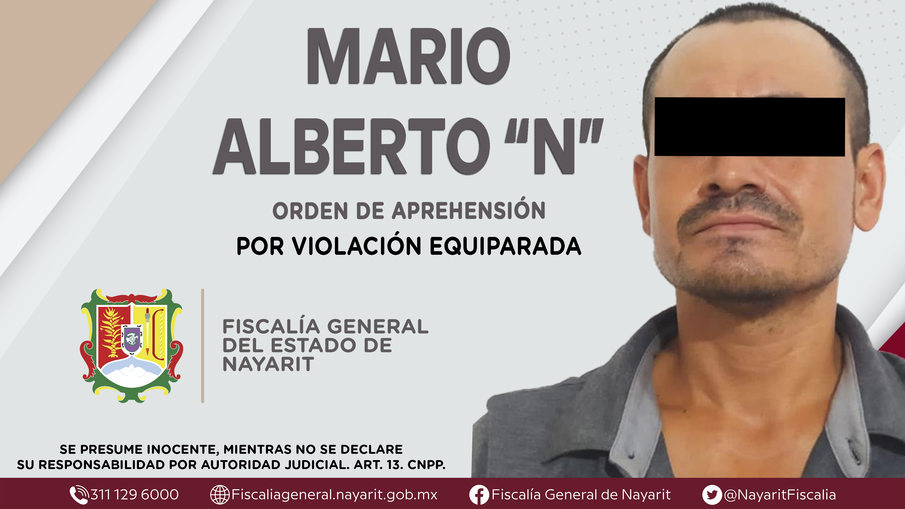 La Fiscalía General del Estado a través de la Agencia de Investigación Criminal dio cumplimiento a una orden de aprehensión en la localidad El Capomo, municipio de Santiago Ixcuintla contra Mario Alberto “N”, por su presunta participación en hec...