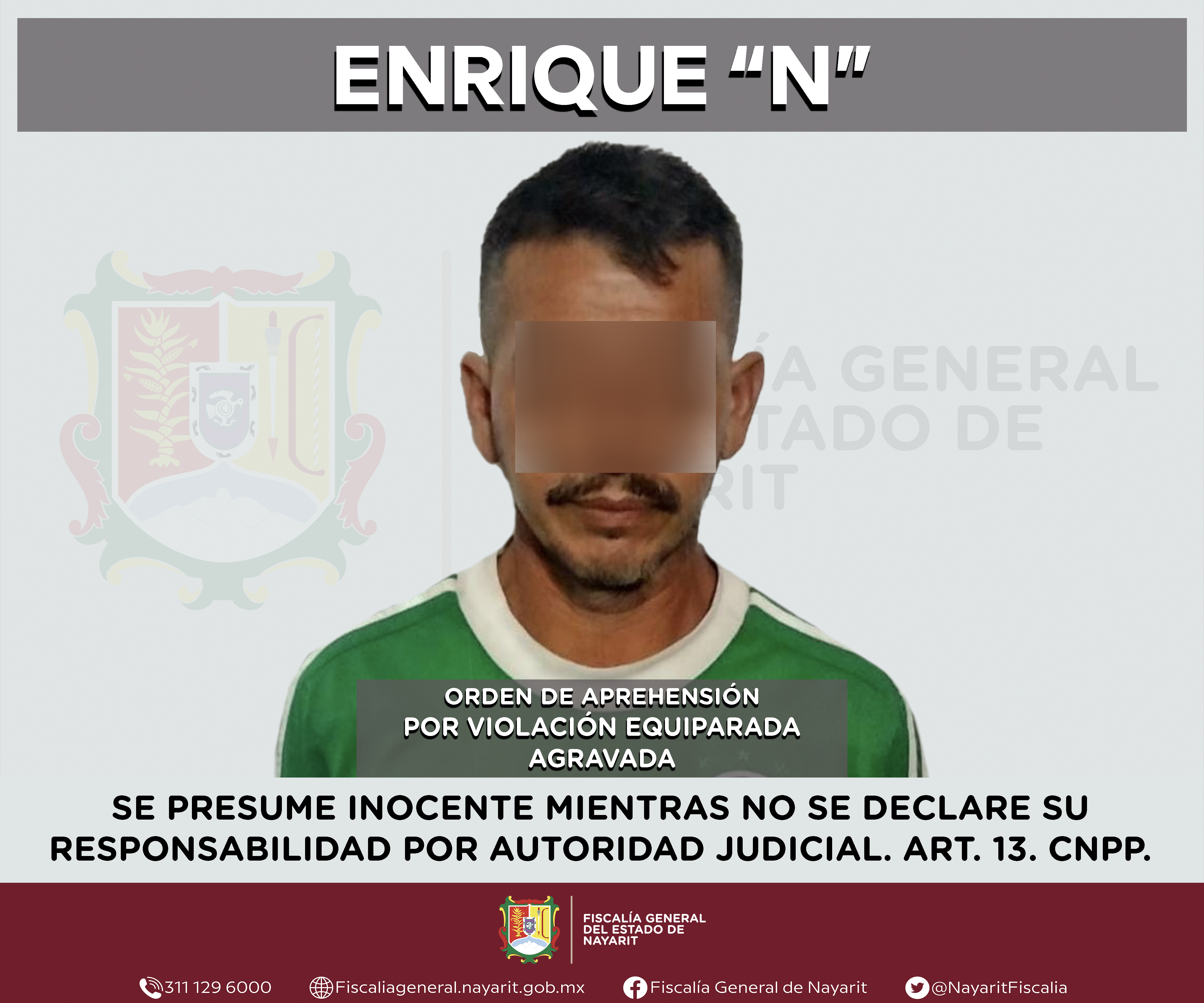 Elementos de la Agencia de Investigación Criminal de Nayarit ejecutaron una orden de aprehensión en el municipio de San Blas contra Enrique “N”, por su presunta participación en hechos que bajo apreciación de la ley configuran el delito de violac...
